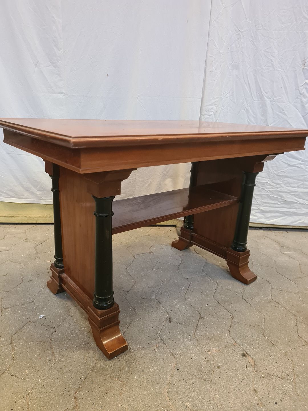 Sofabord i fineret og massivt mahogni, fra 1930erne. Det har brugsspor. Højde 58cm Bredde 56cm Længde 92cm Emne nummer: 90946