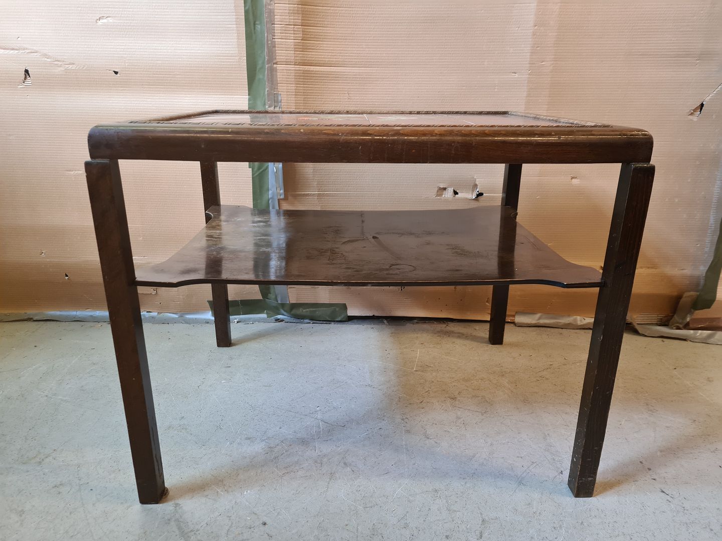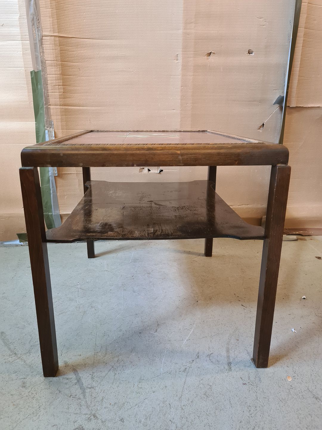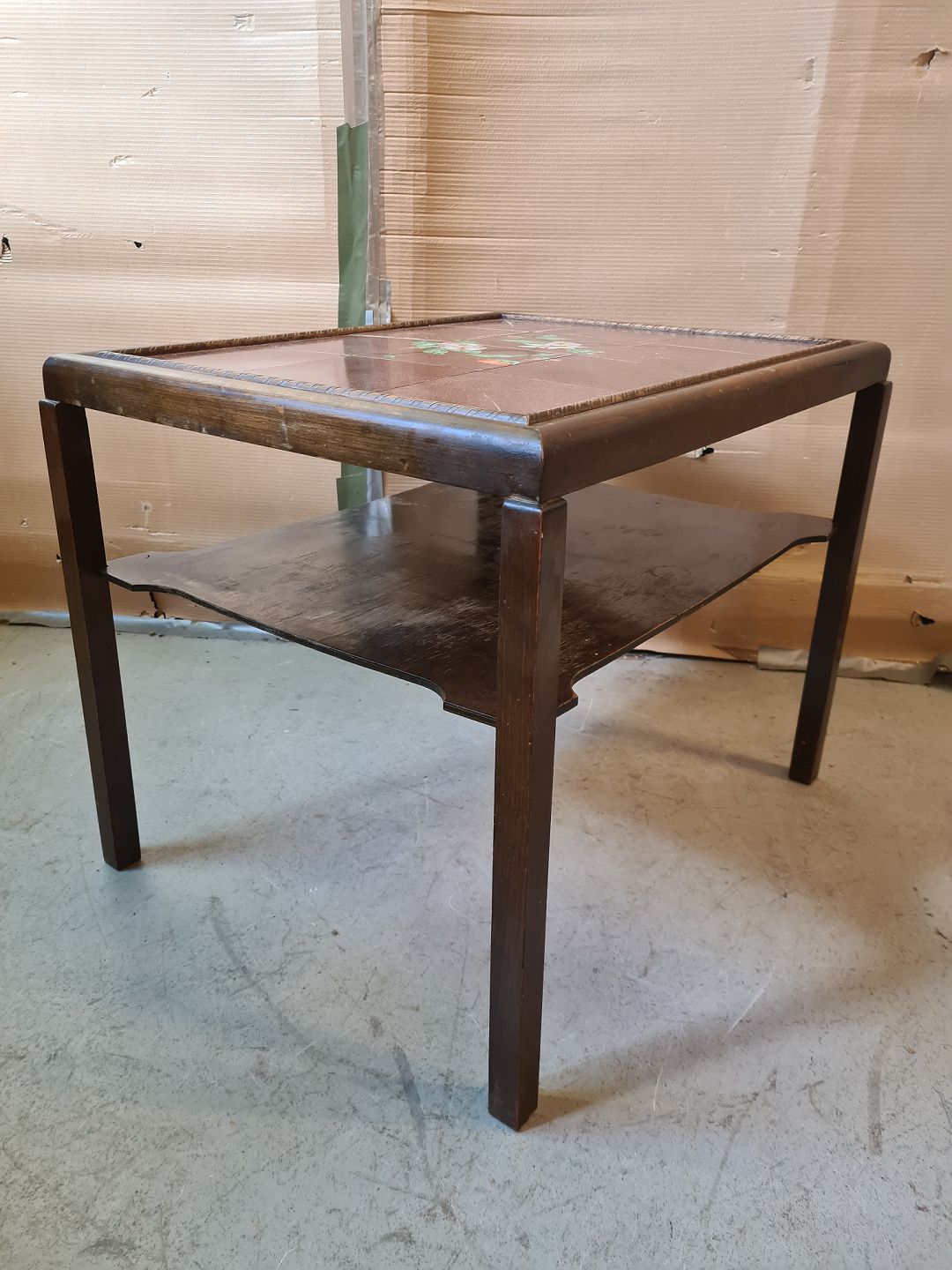 Sofabord i birketræ med kakler, fra 1930erne. Det har brugsspor. Højde 56cm Bredde 56cm Længde 71cm Emne nummer: 75911