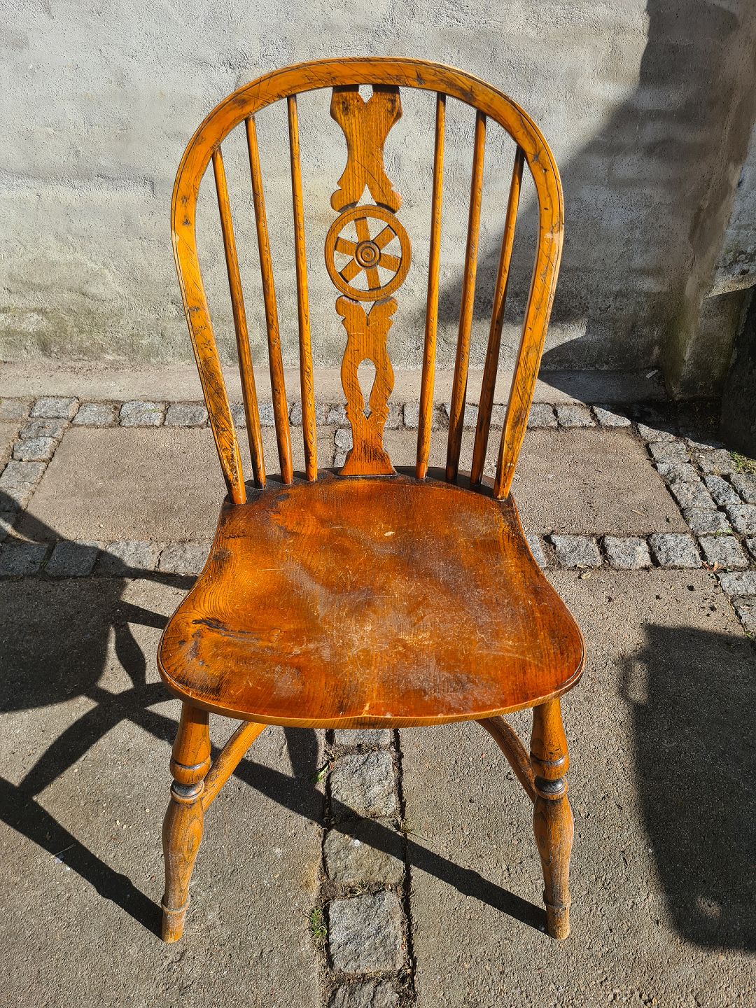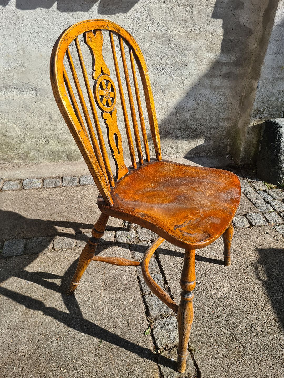 Pindestol fra 1920´erne i fyr. Fremstår god, stabil og uden nævneværdige brugsspor. Højde 87 cm. Bredde 41 cm. Dybde 49 cm. Sædehøjde 44 cm. Emne nummer: 80579