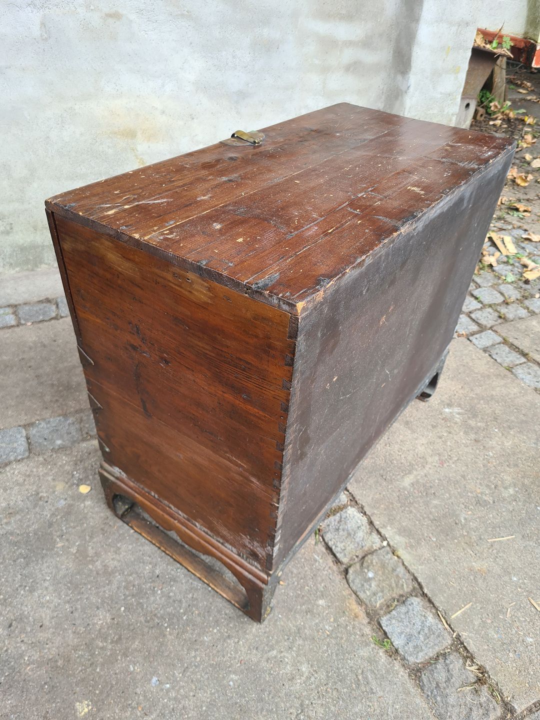 Kiste fra 1950´erne i fyr med messingbeslag. Fremstår pæn, velholdt og udmærket funktionsdygtig. Højde 62 cm. Bredde 71 cm. Dybde 37 cm. Emne nummer: 80598