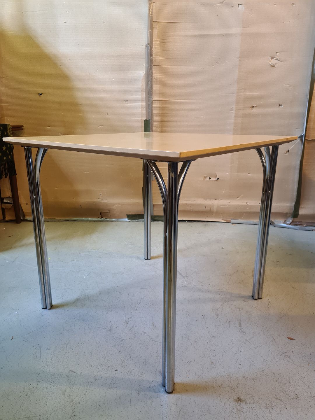Nanna Ditzel bord i fineret bøgetræ og stål, fra 1990erne. Det har brugsspor. Højde 72cm Bredde 80cm Længde 80cm Emne nummer: 75919