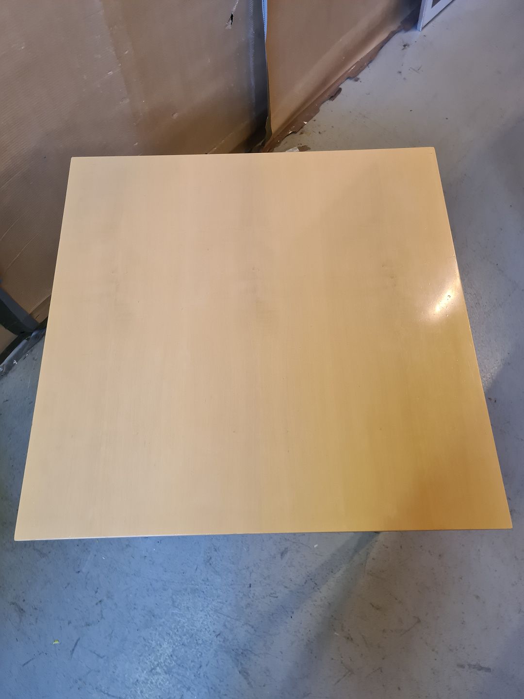 Nanna Ditzel bord i fineret bøgetræ og stål, fra 1990erne. Det har brugsspor. Højde 72cm Bredde 80cm Længde 80cm Emne nummer: 75920