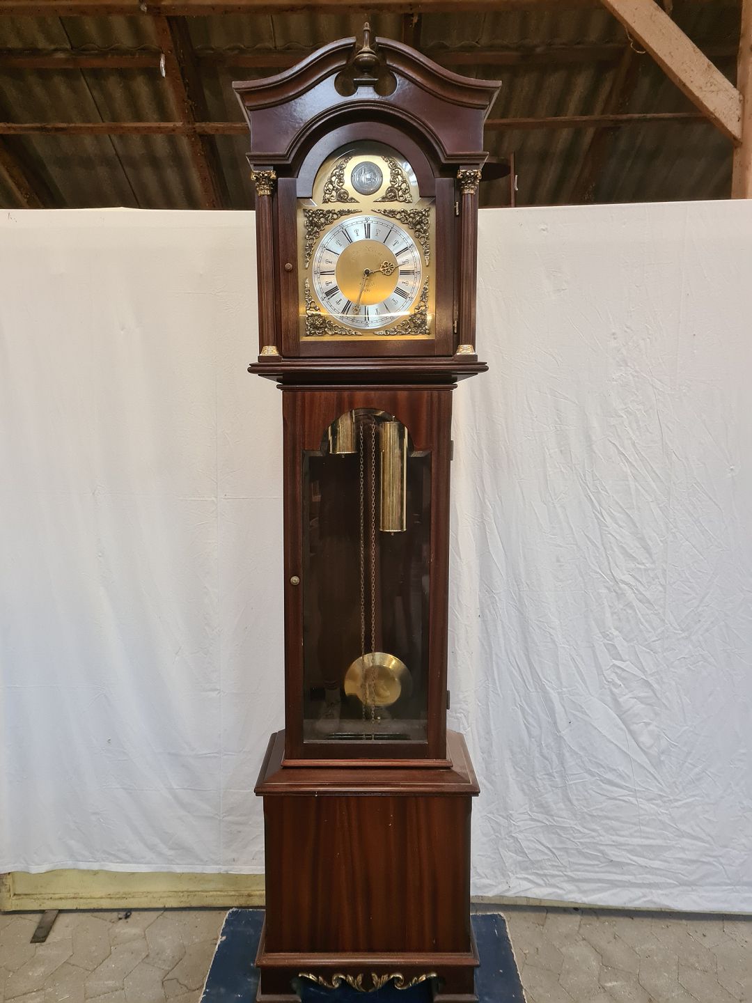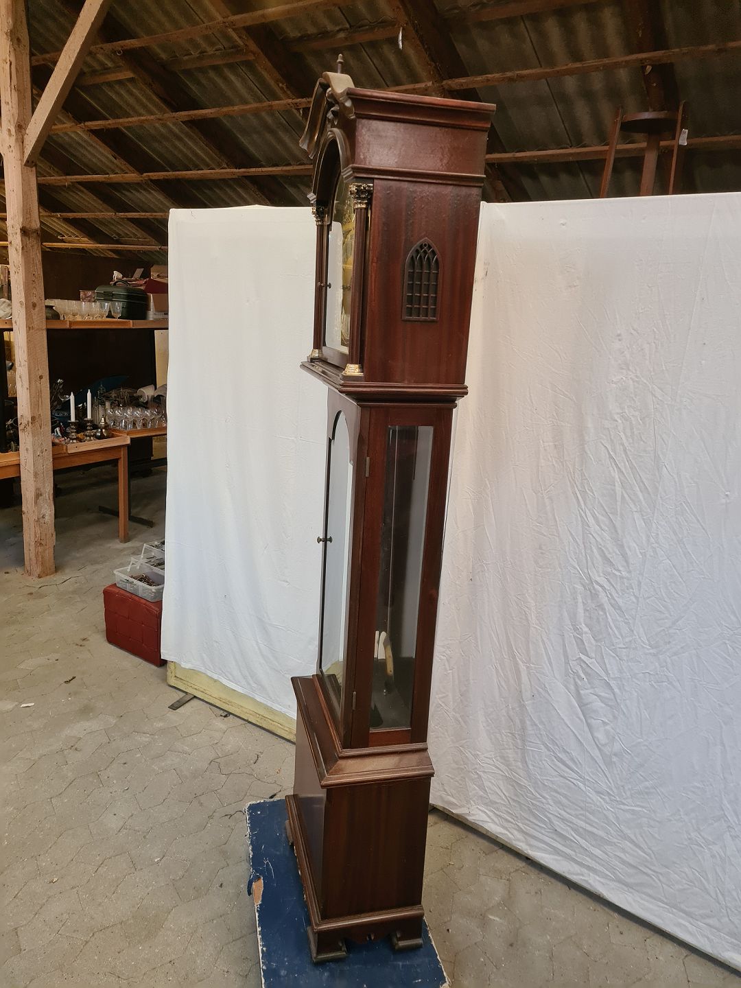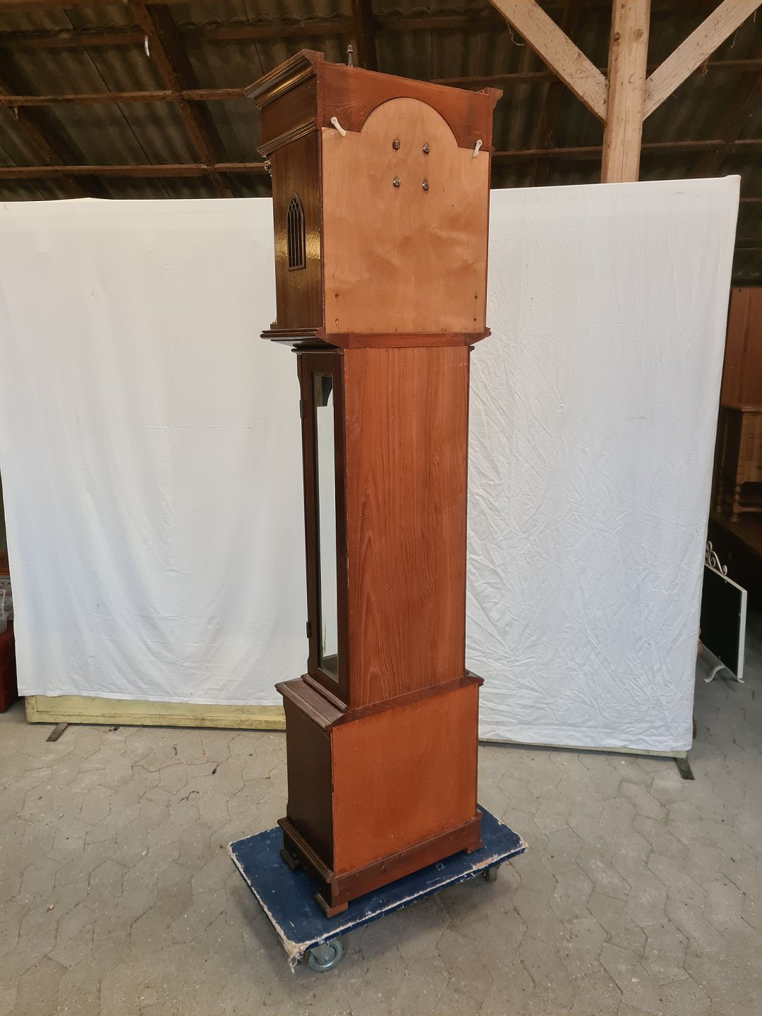 Standur i fineret mahogni, fra 1980erne. Det har brugsspor. Højde 210cm Bredde 50cm Dybde 28cm Emne nummer: 90971