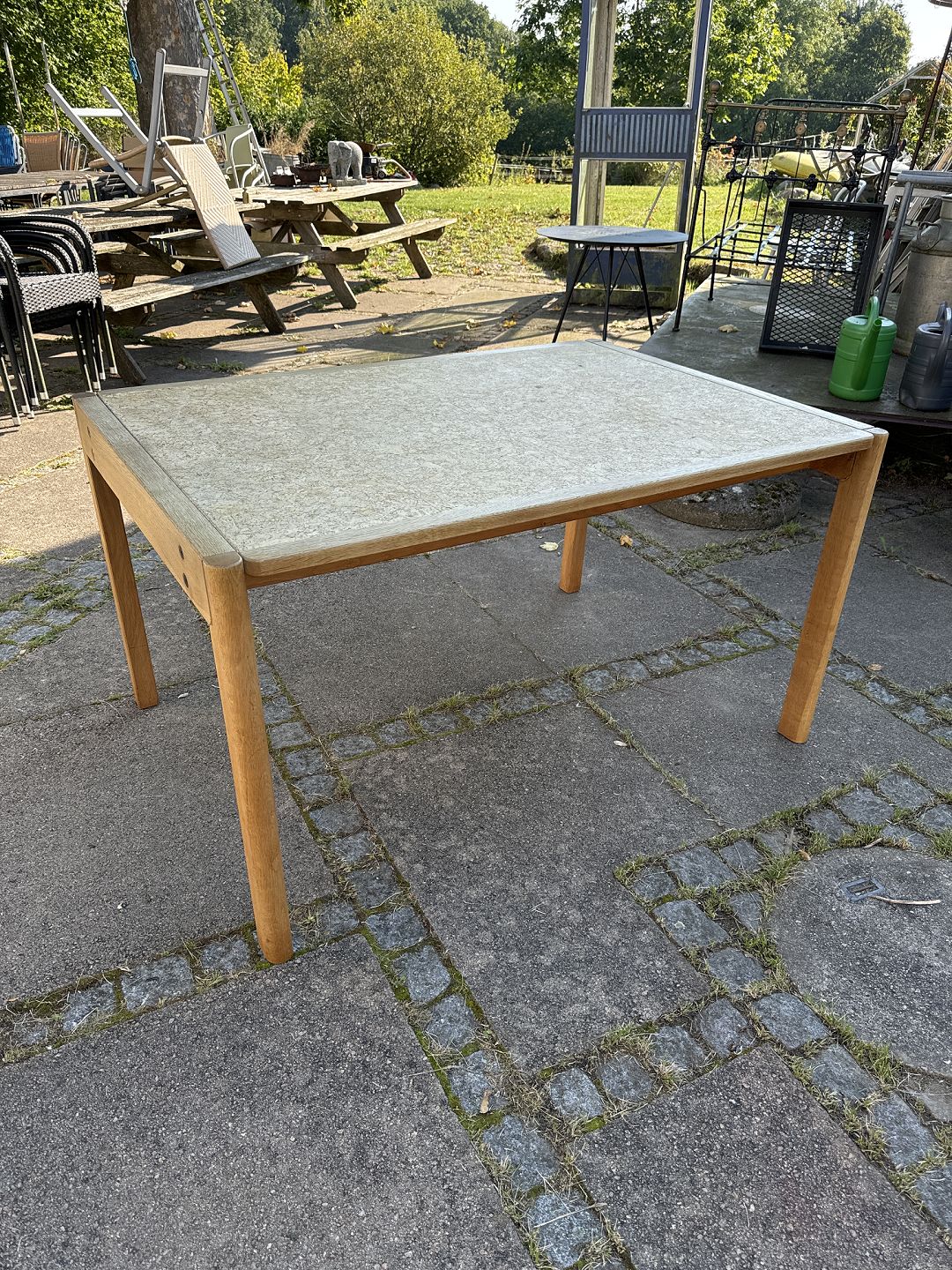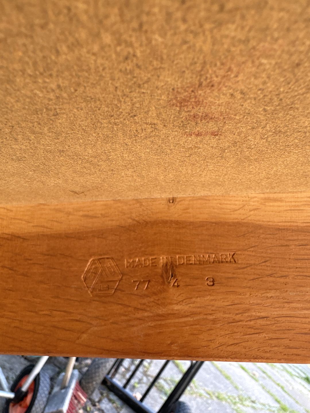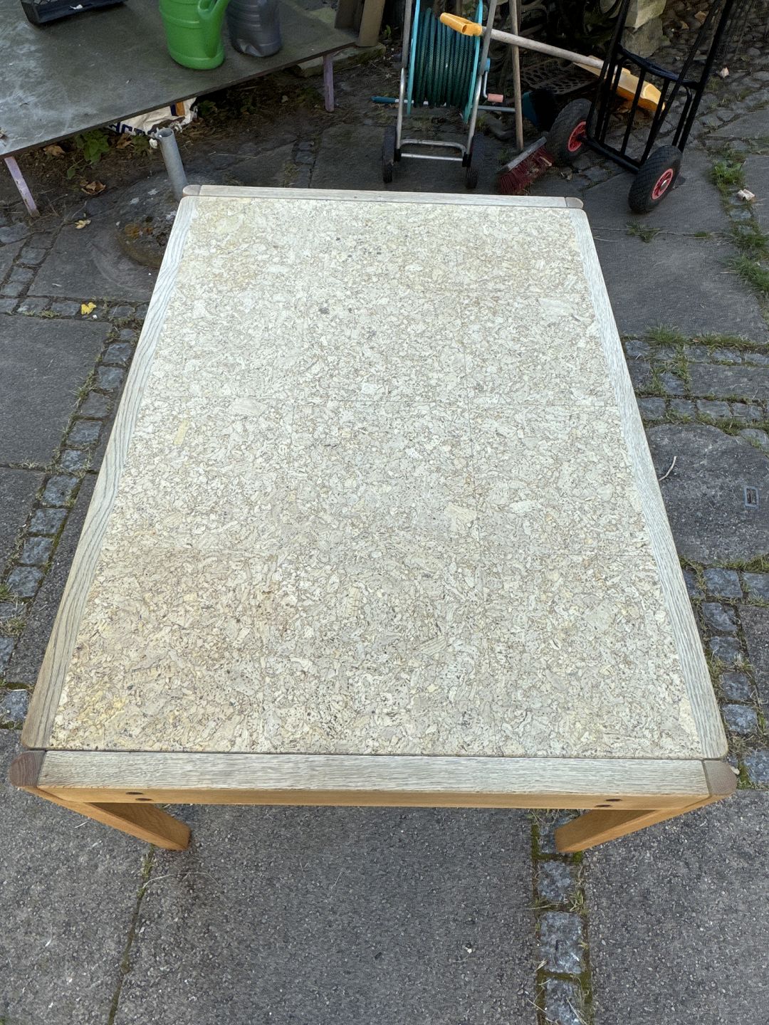 Jørgen Bækmark spisebord udført i eg med indlagt kork i pladen. Produceret af FDB og fremstillet i 1977 (stemplet herfra) Pæn brugt stand. Mål: H. 70 cm. B. 127,5 cm. D. 89,5 cm. Emne nummer: 80570