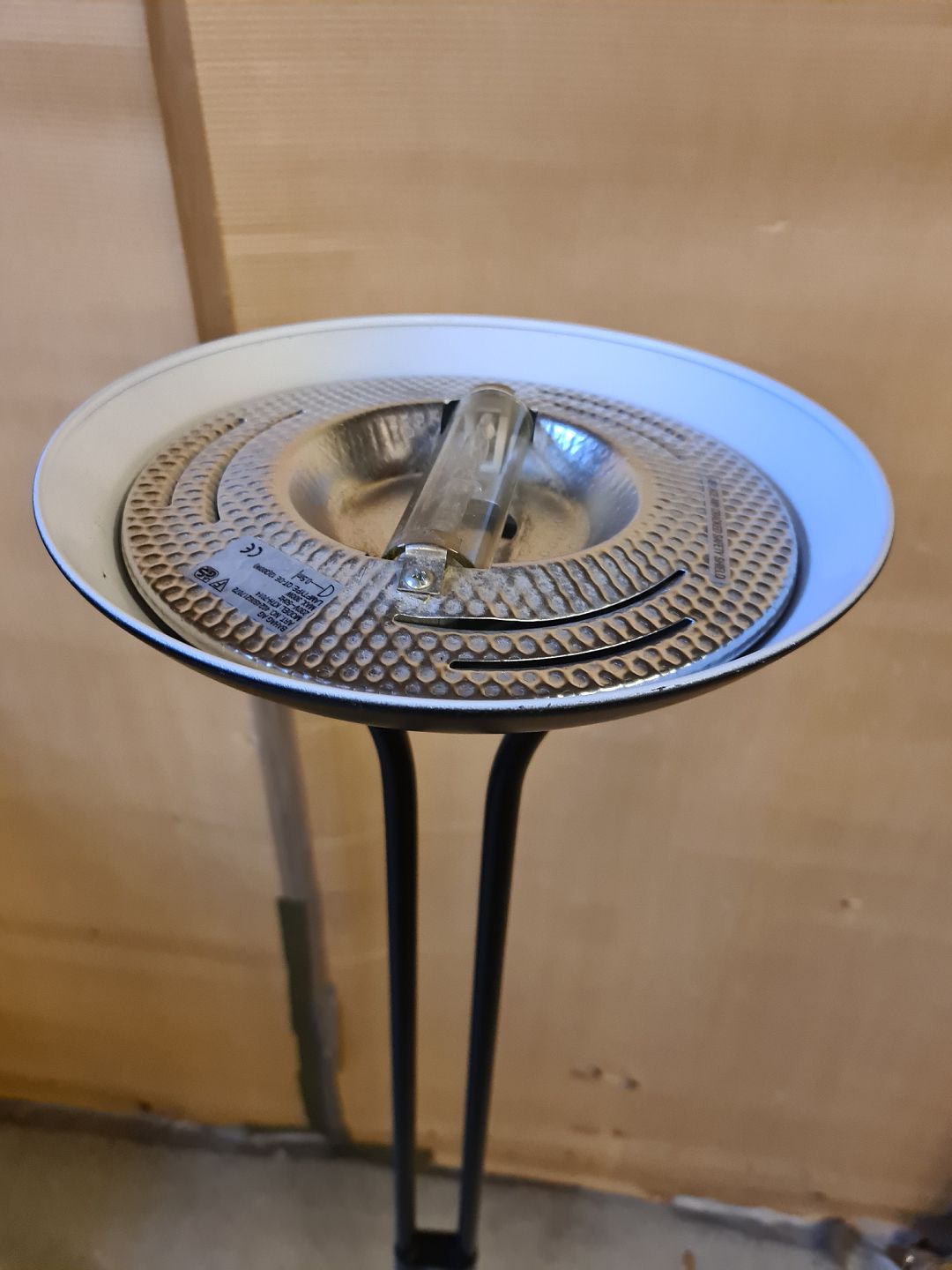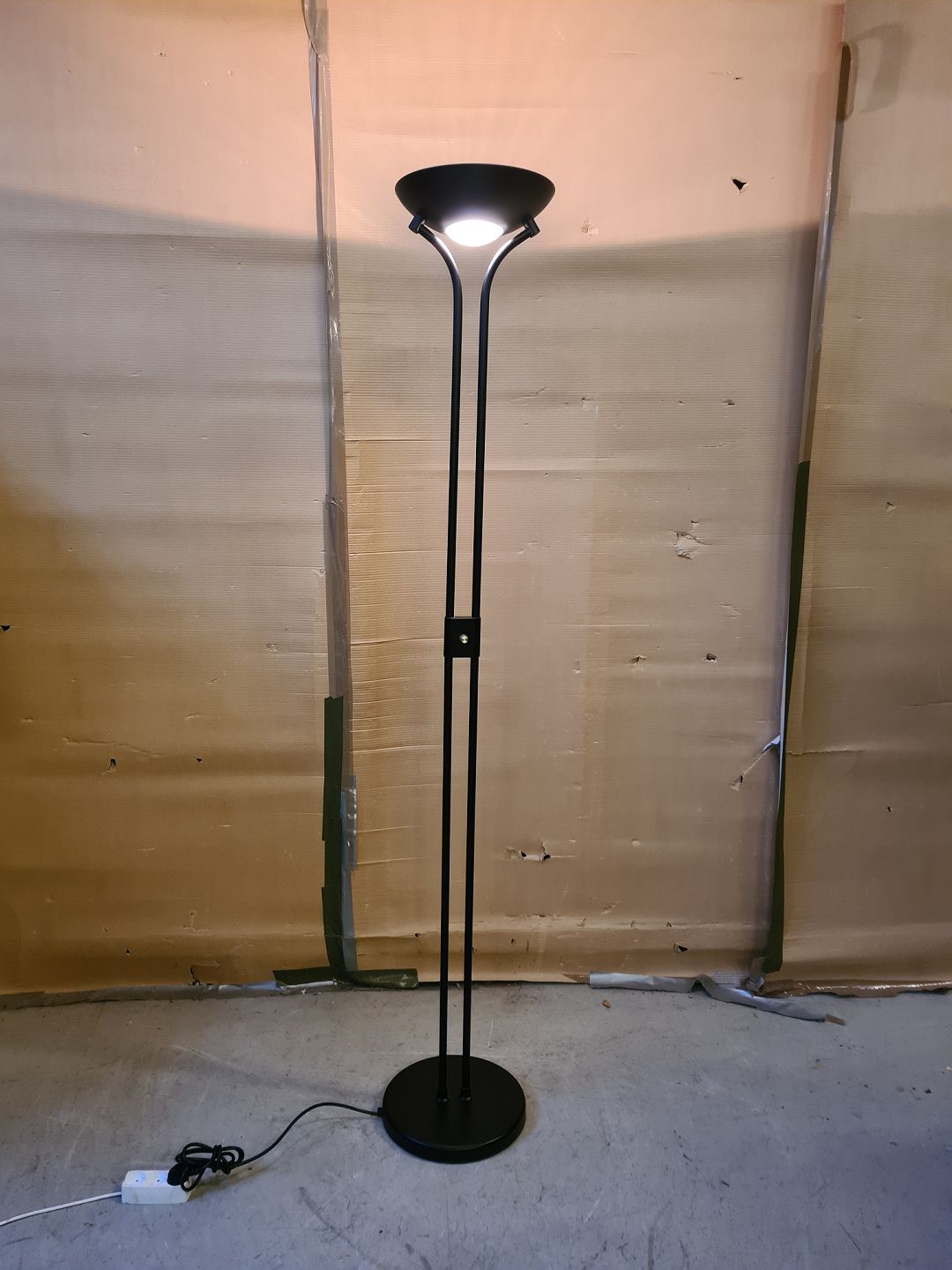 Malet standerlampe i metal, fra 2000erne. Den har små brugsspor. Højde 183cm Diameter på fod 31cm Emne nummer: 75934