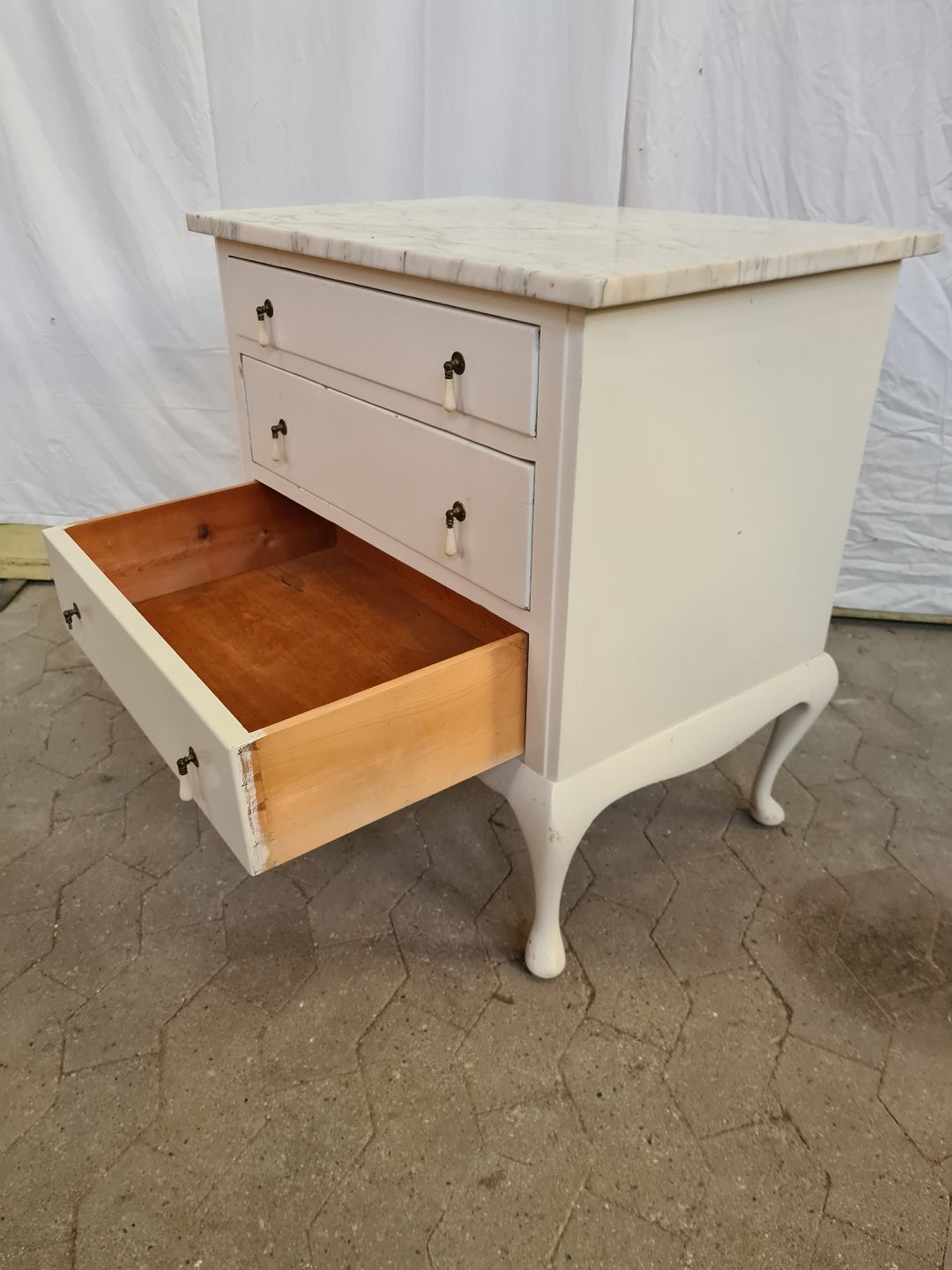 Malet kommode med marmorplade, fra 1920erne. Den har brugsspor. Højde 75cm Bredde 70cm Dybde 47cm Emne nummer: 90990