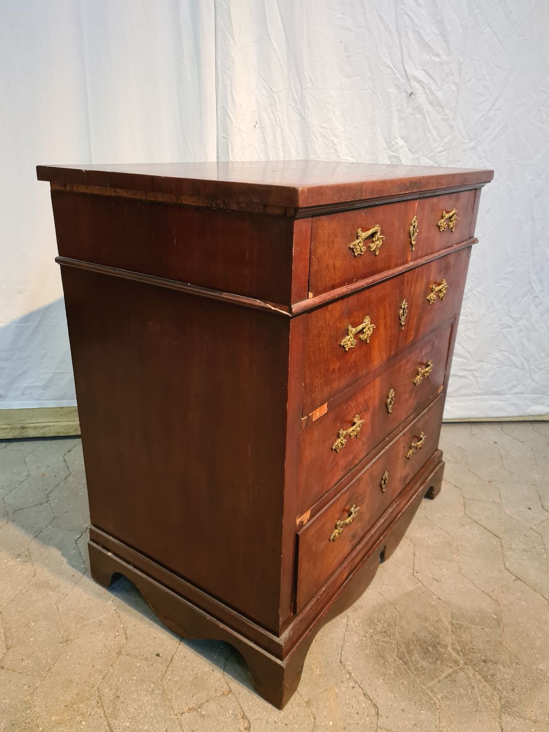 Kommode i fineret mahogni, fra 1900erne. Den har brugsspor og div. små defekter. Højde 81cm Bredde 77cm Dybde 48cm Emne nummer: 91112