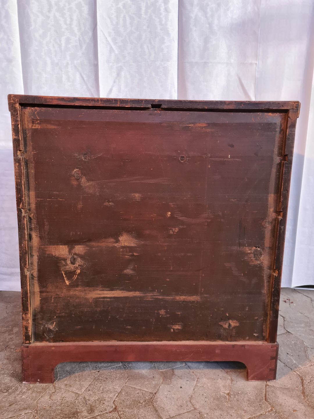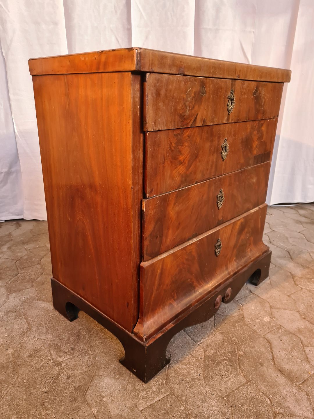 Kommode i fineret mahogni, fra 1910erne. Den har brugsspor. Højde 83cm Bredde 77cm Dybde 44cm Emne nummer: 91034