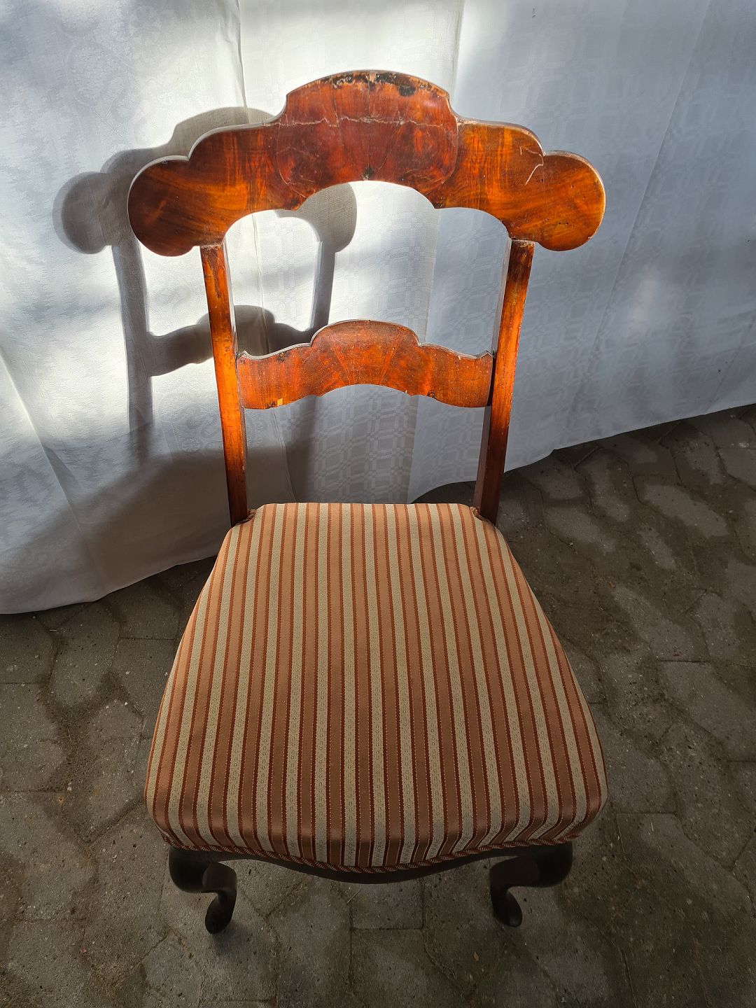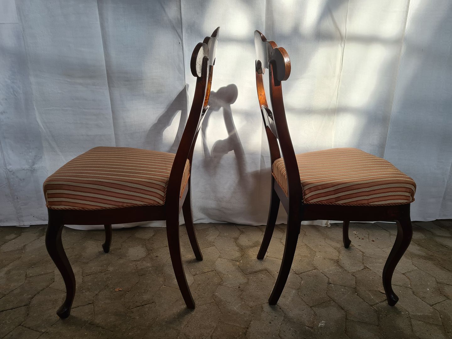 2 Salonstole i mahogni, fra 1900erne. De har brugsspor. Ryghøjde 92cm Sædehøjde 48cm Emne nummer: 91042