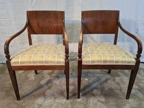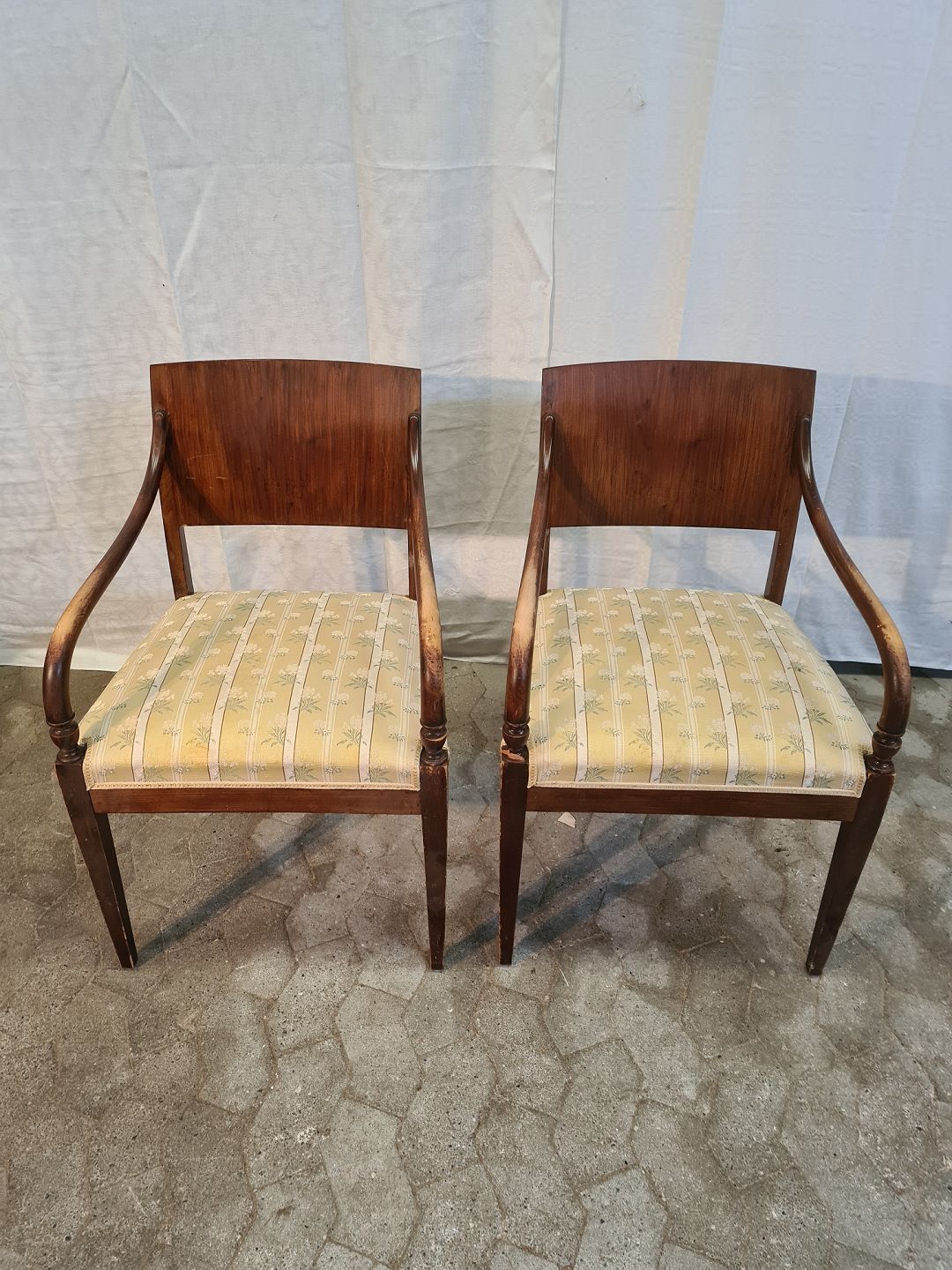 2 Armstole i mahogni og bøgetræ, fra 1910erne. De har brugsspor. Ryghøjde 85cm Sædehøjde 47cm Emne nummer: 91072