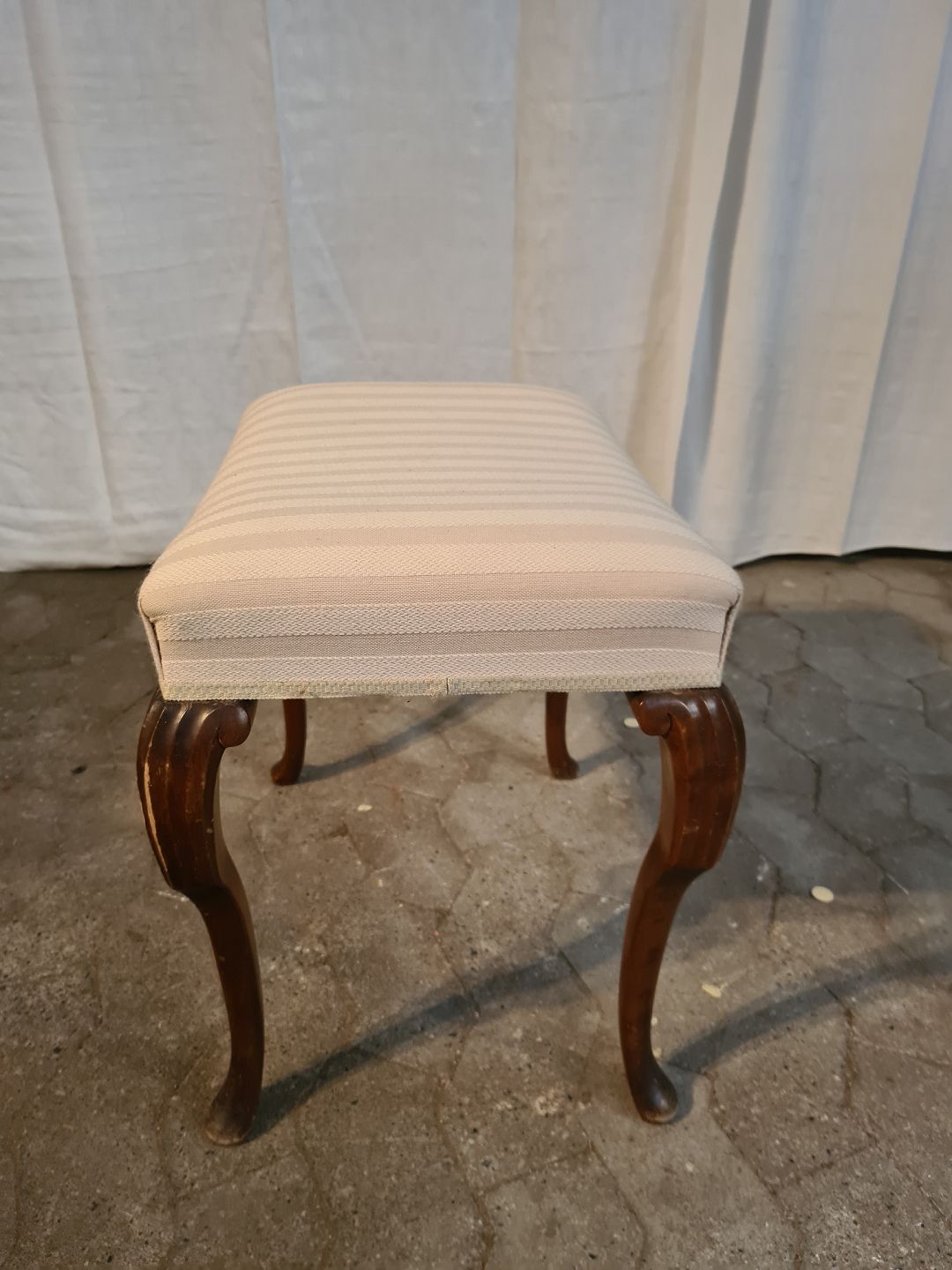 Skammel i massivt nødetræ, fra 1930erne. Den har brugsspor. Højde 47cm Bredde 37cm Længde 50cm Emne nummer: 91099