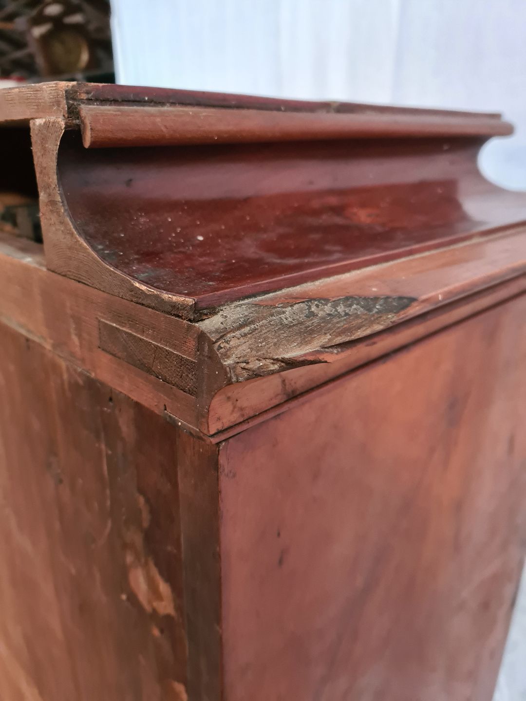 Skab i fineret mahogni, fra 1900erne. Det har brugsspor. Højde 158cm Bredde 78cm Dybde 48cm Emne nummer: 91118