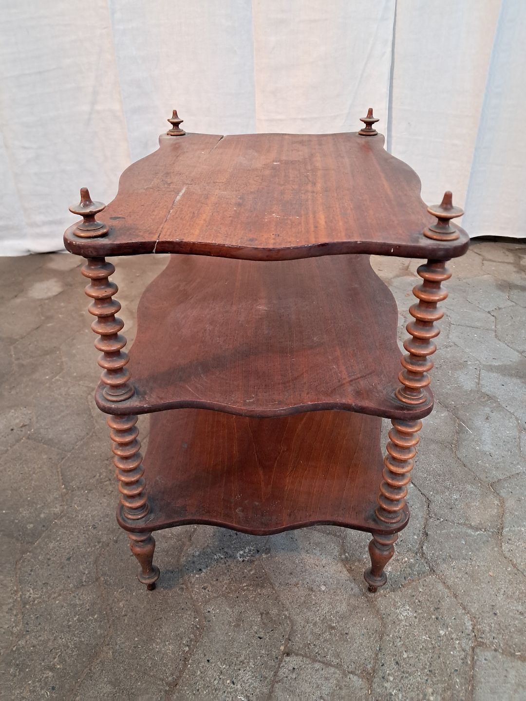 Etager i massivt mahogni og bøgetræ, fra 1900erne. Den har brugsspor og små defekter. Højde 51cm Bredde 34cm Længde 50cm Emne nummer: 91152