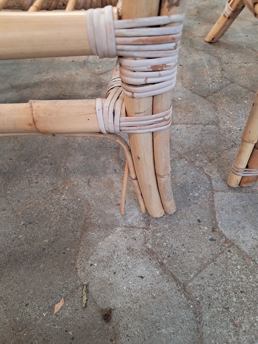 2 Kurvestole i bambus, fra 1990erne. De har brugsspor og små defekter. Ryghøjde 79cm Sædehøjde 35cm Emne nummer: 91160