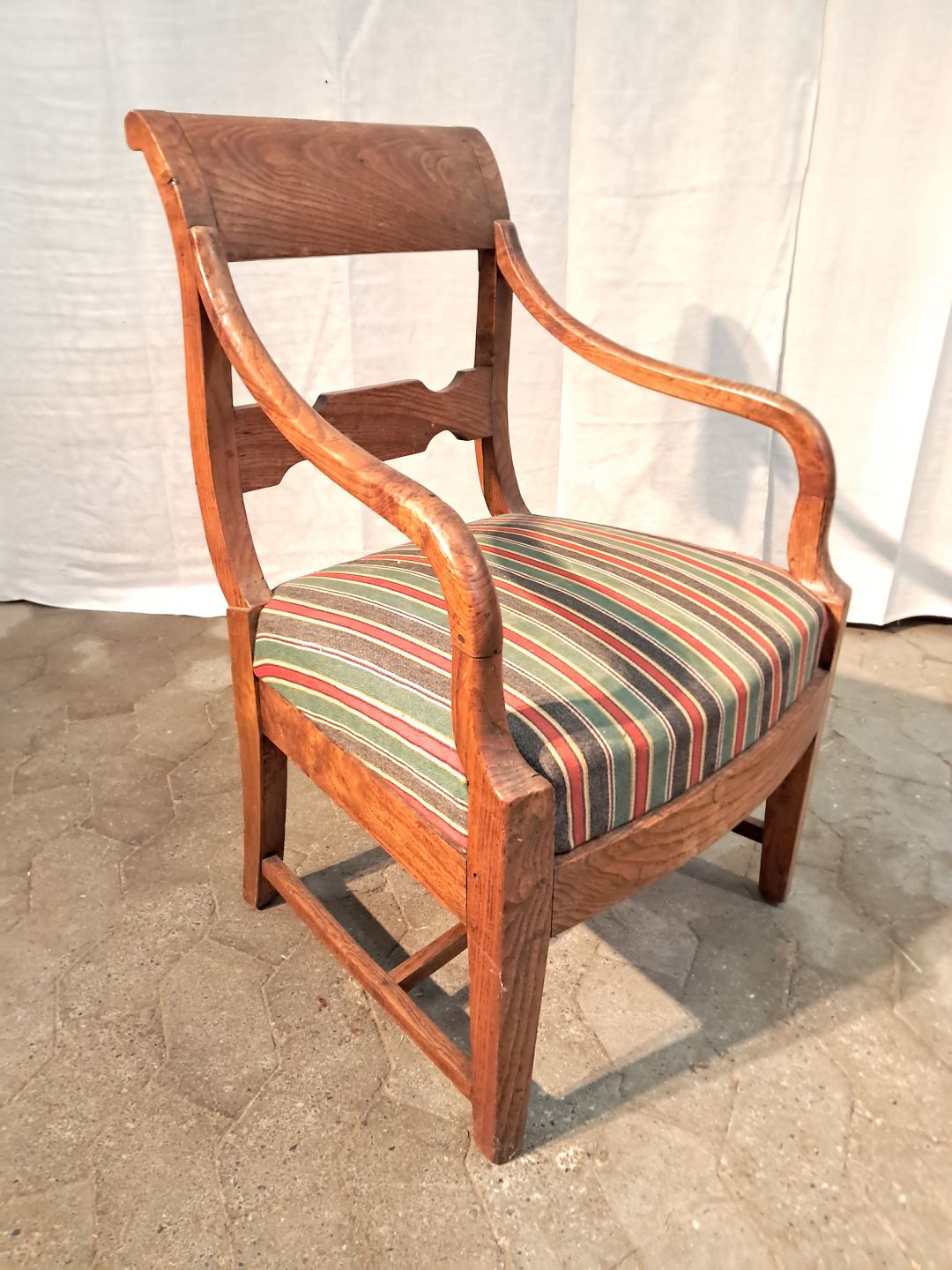 Armstol imassivt egetræ, fra 1900erne. Den har brugsspor og en defekt. (se foto) Ryghøjde 82cm Sædehøjde 39cm Emne nummer: 91193