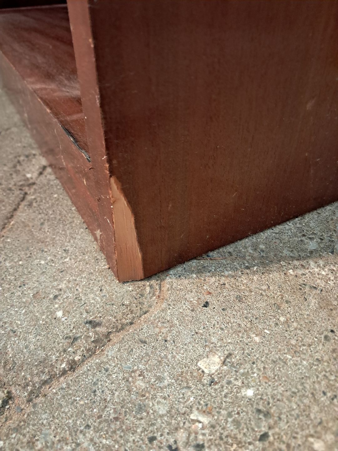 2 Reoler i fineret mahogni, fra 1950erne. De har brugsspor og defekter på siden.(se foto) Højde 80CM Bredde 75Cm Dybde 25cm Dybde i toppen 30cm Emne nummer: 91210