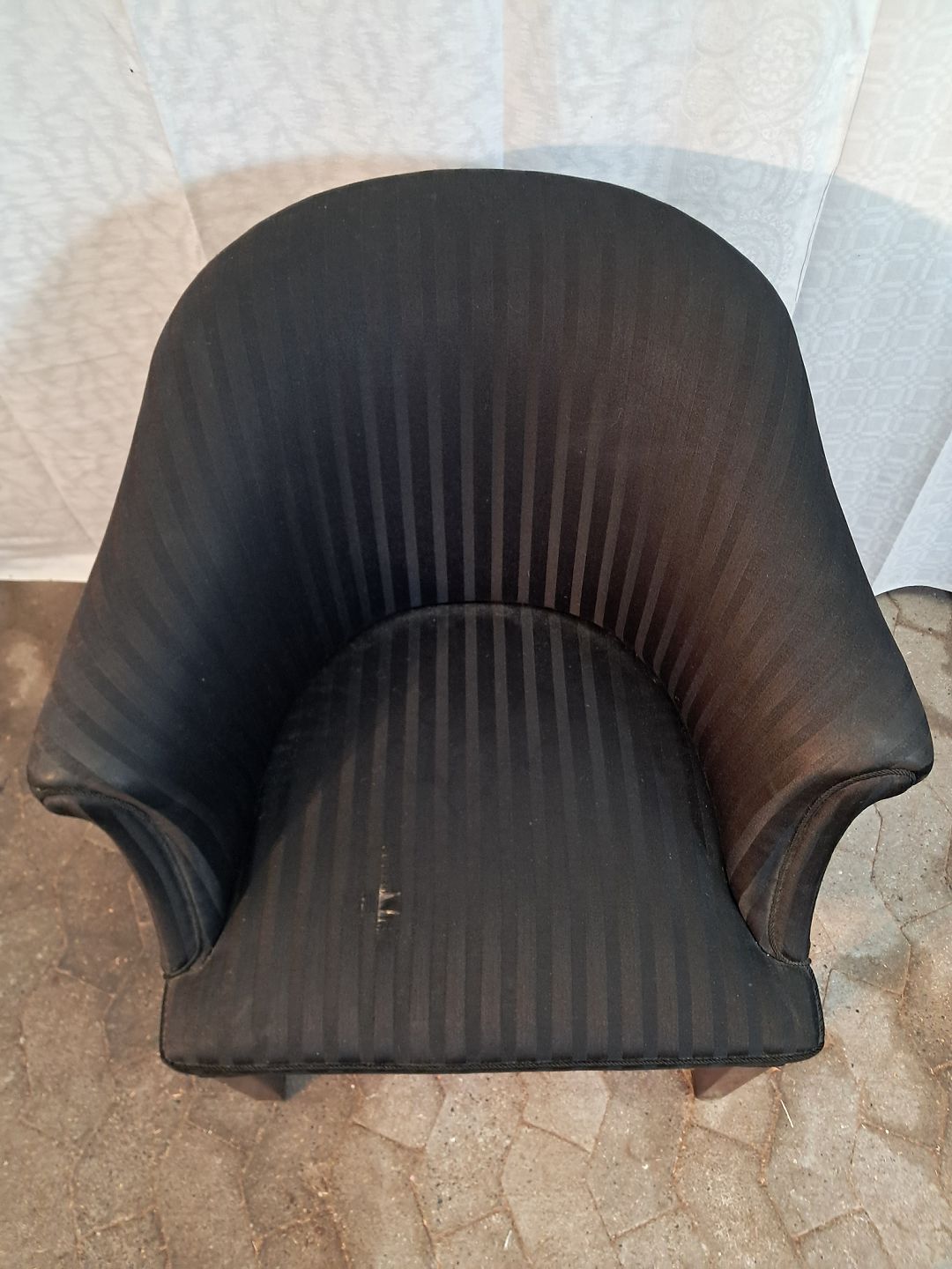 Overpolstret lænestol med mahogni ben, fra 1910erne. Den har brugsspor og et slid-hul. Ryghøjde 88cm Sædehøjde 45cm Emne nummer: 91224