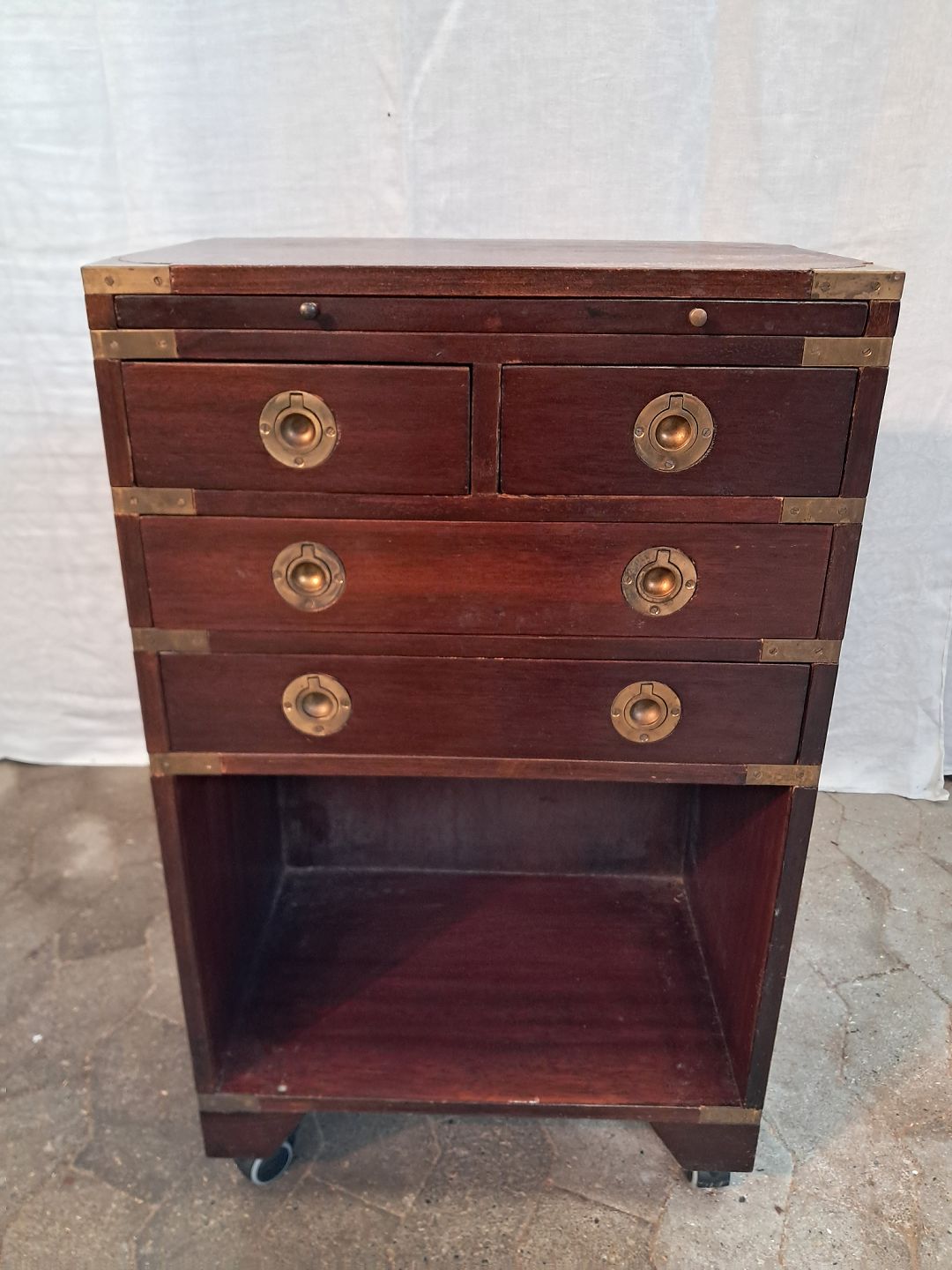 Kommode i fineret mahogni, fra 1990erne. Den har brugsspor. Højde 77cm Bredde 46cm Dybde 30cm Emne nummer: 91237