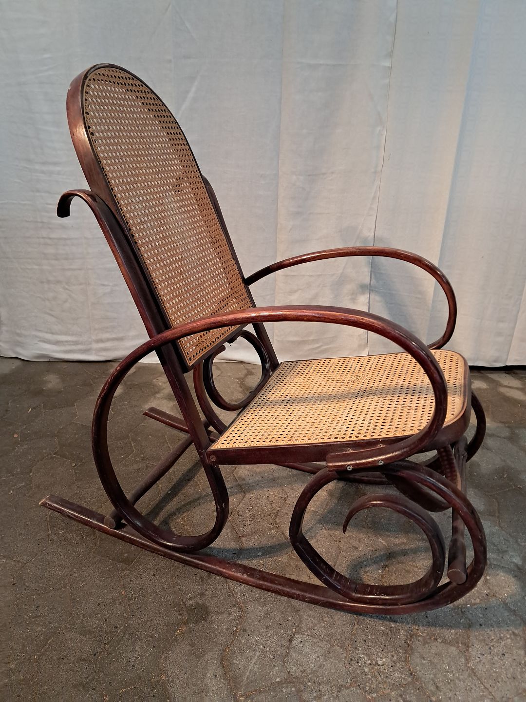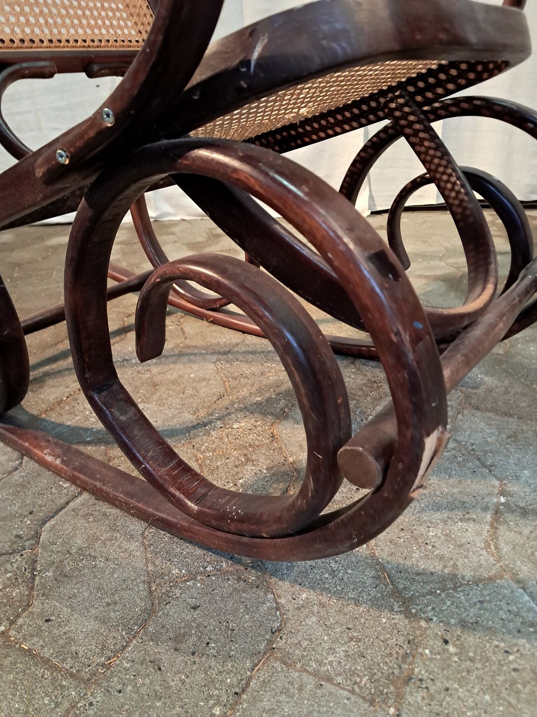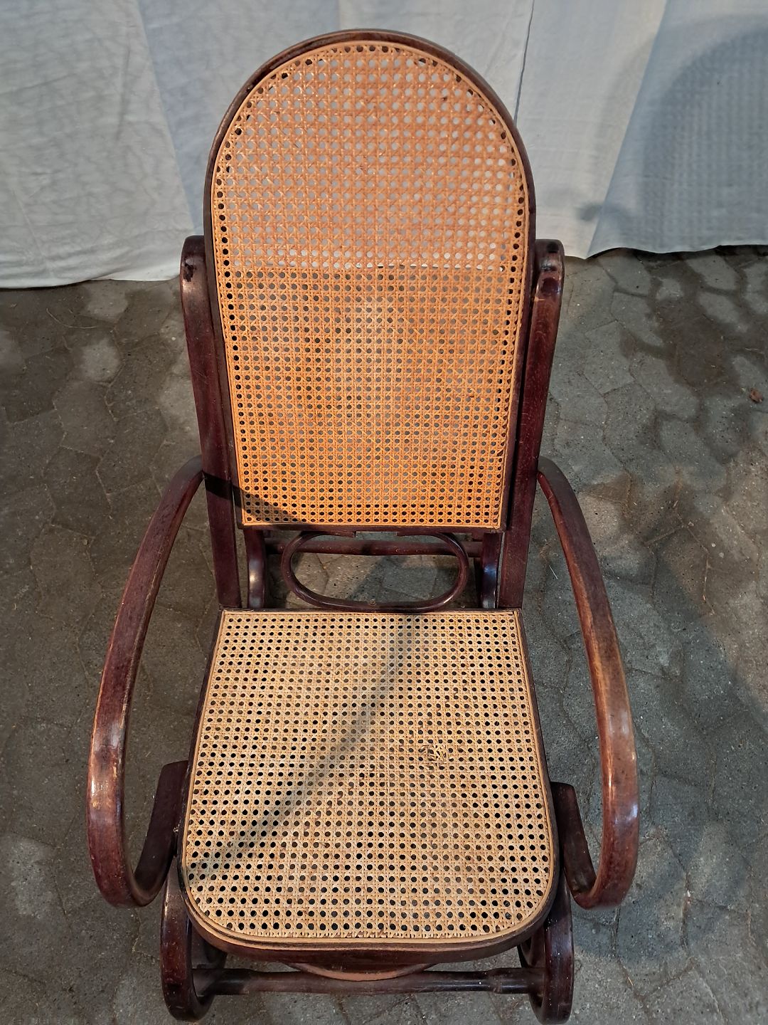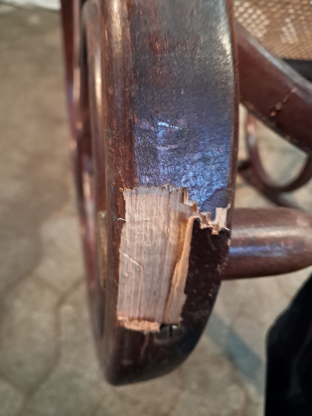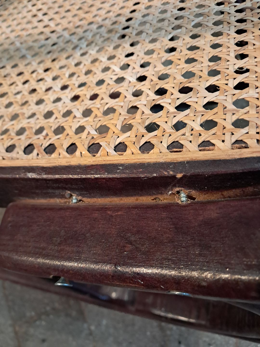 Pynte stol i bøgetræ og flet, fra 1980erne. Den har defekter og trænger til service. (se foto) En person på 80kg kan forsigtigt gynge i den. Ryghøjde 98cm Sædehøjde 40cm Bredde 54cm Længde 89cm Emne nummer: 91261
