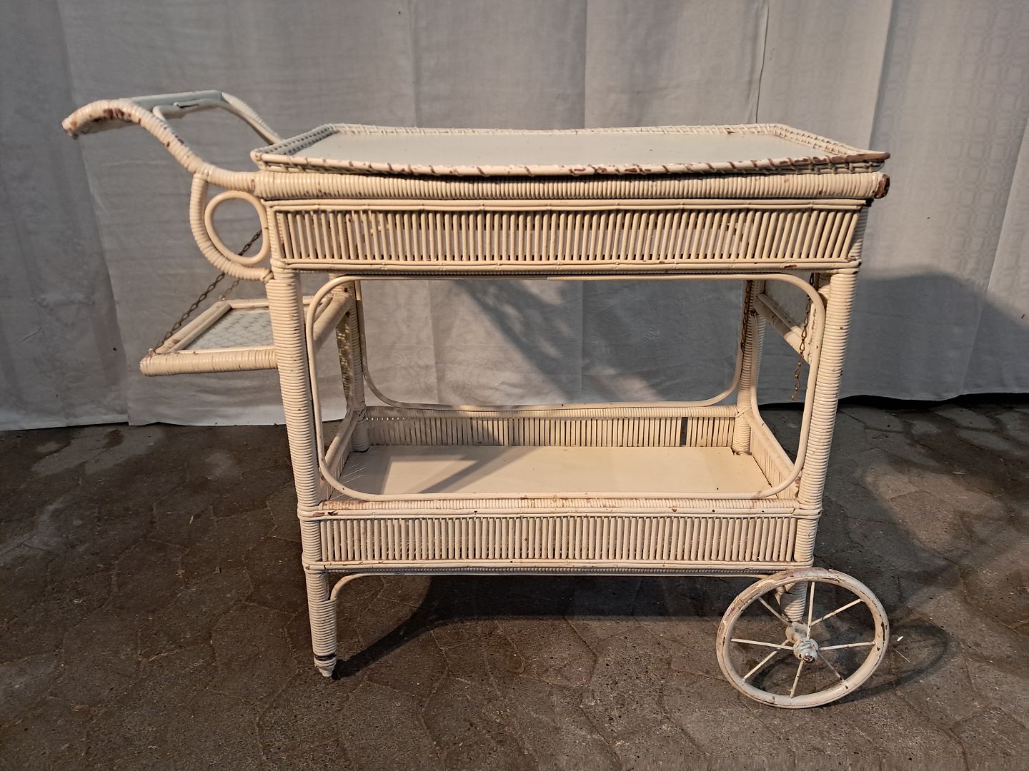 Malet kurve rullebord, fra 1920erne. Det har brugsspor og den en hylde mangler 2 kroge.(se foto) Højde 71cm Bredde 41cm Længde 87cm Emne nummer: 91275