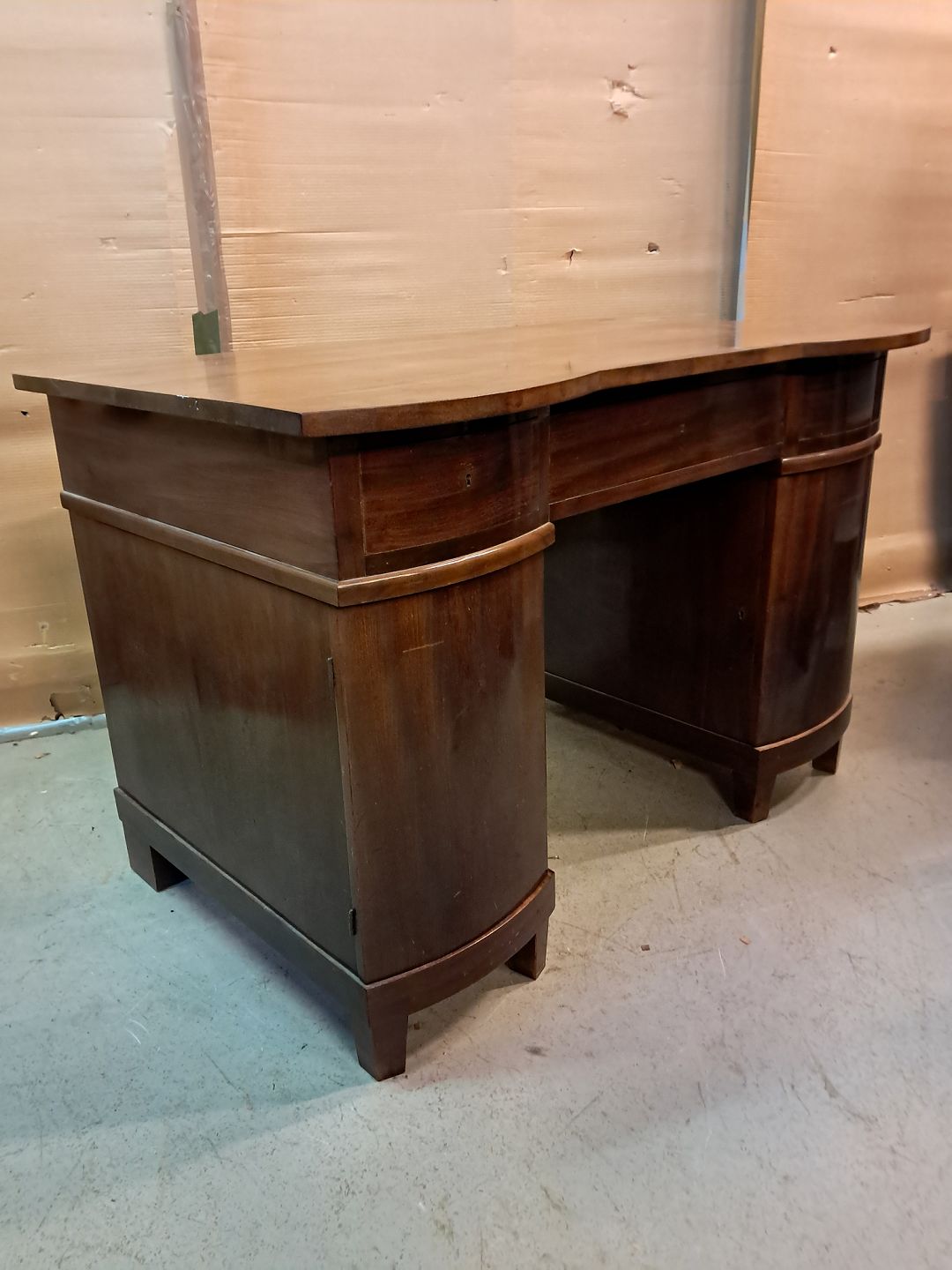Skrivebord i fineret mahogni, fra 1910erne. Det har brugsspor. Højde 75cm Højde fra gulv til underkant 59cm Bredde 115cm Dybde 70cm Emne nummer: 76032