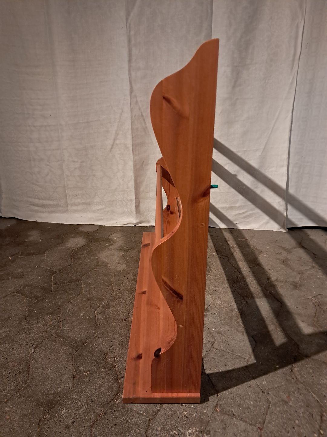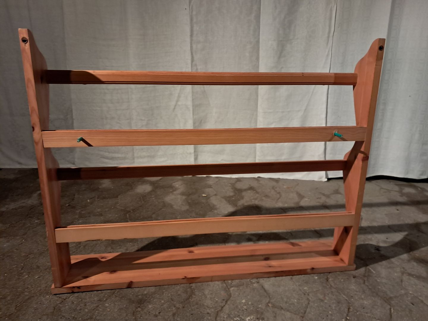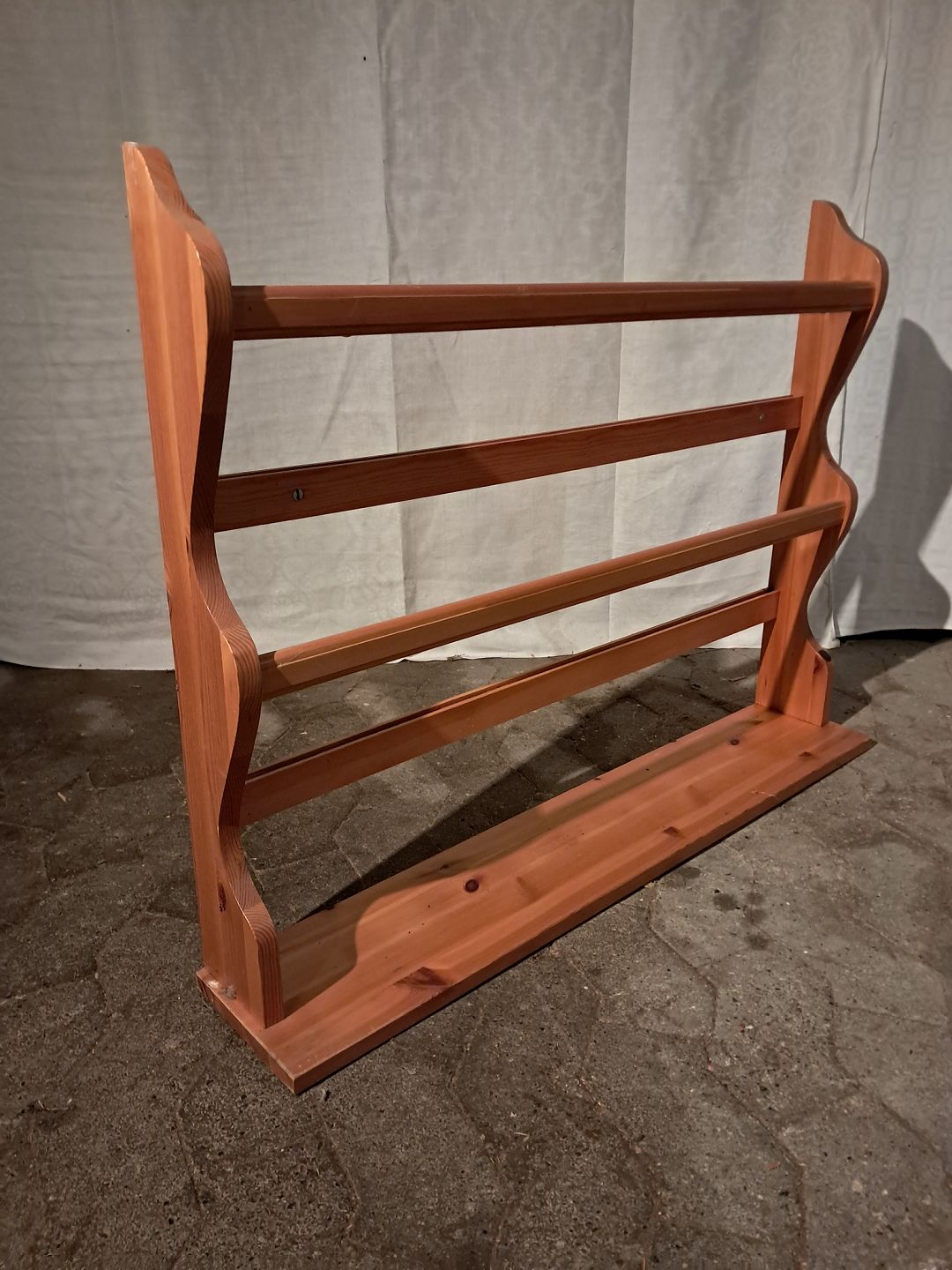 Tallerkenrække i massivt fyrretræ, fra 1990erne. Den har brugsspor. Højde 70cm Bredde 90cm Dybde 17cm Emne nummer: 91282