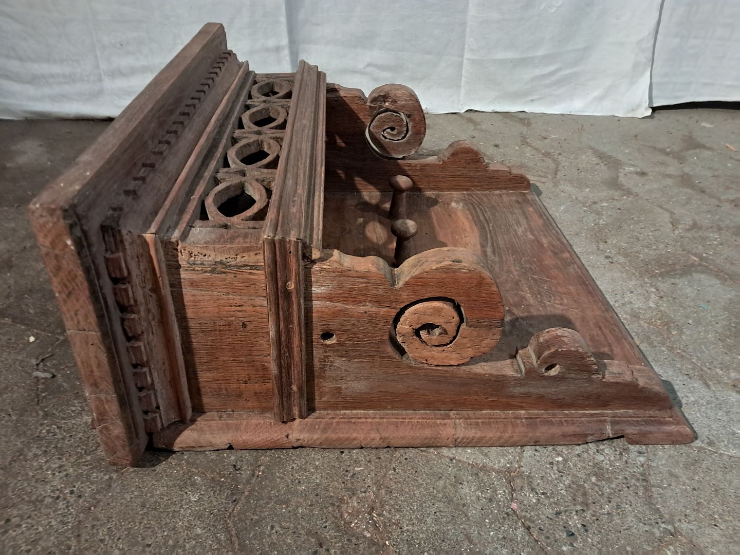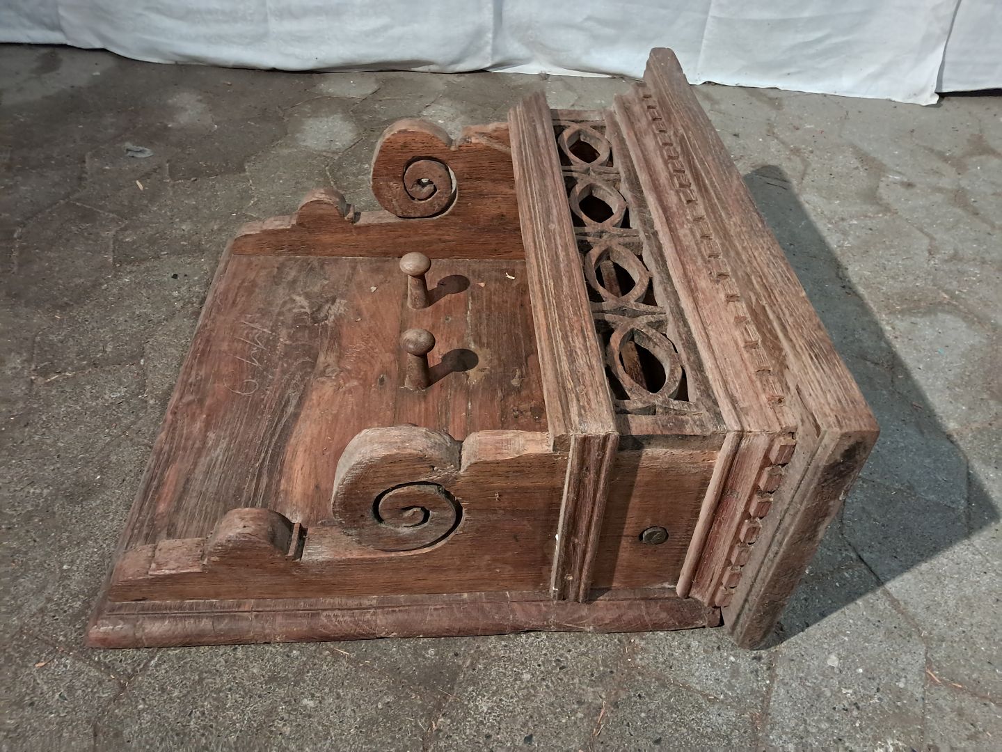 Gammel entrehylde i massivt egetræ, fra 1860erne. Den har brugsspor/patina. Højde 50cm Bredde 51cm Dybde 24cm Emne nummer: 91286