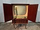 Tv-skab i fineret teaktræ, fra 1950erne. Det har brugsspor og tvét virker ikke. Højde 102cm Bredde 61cm Dybde 44cm Emne nummer: 91304