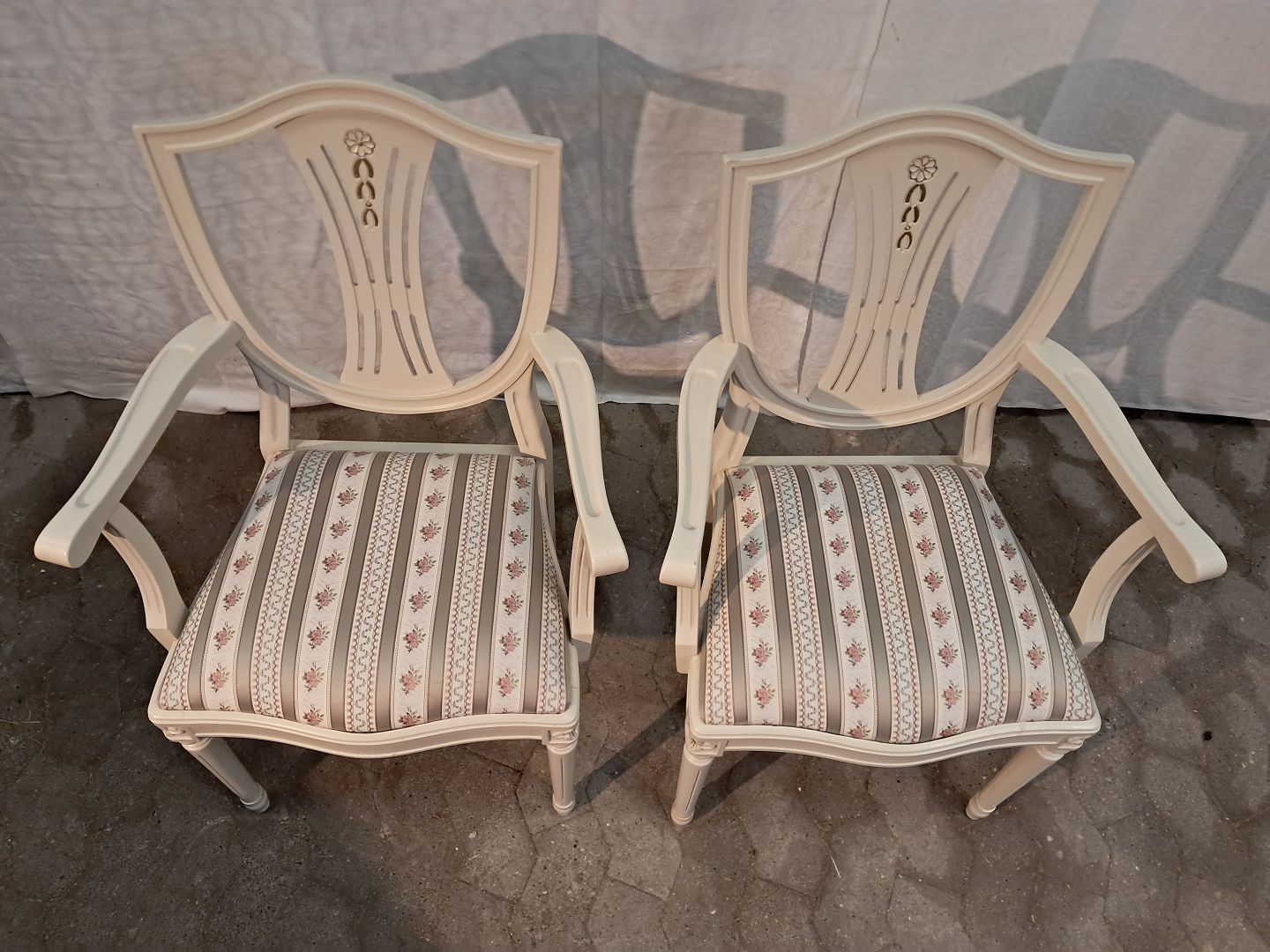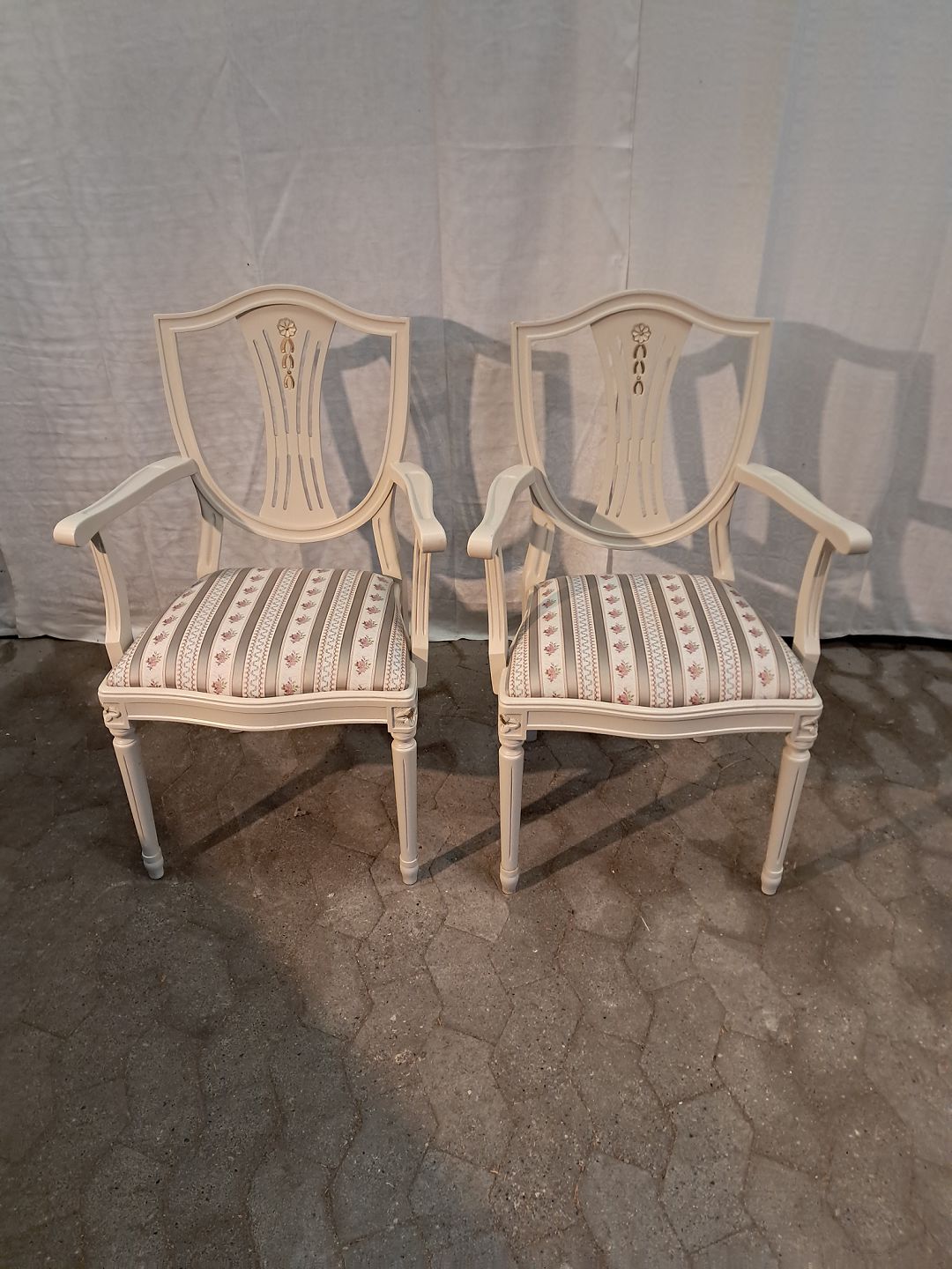 2 Malede stole, fra 1990erne. De har brugsspor. Ryghøjde 92cm Sædehøjde 45cm Se emne Nr. 91312, 91311, 91310, 91309 Emne nummer: 91308