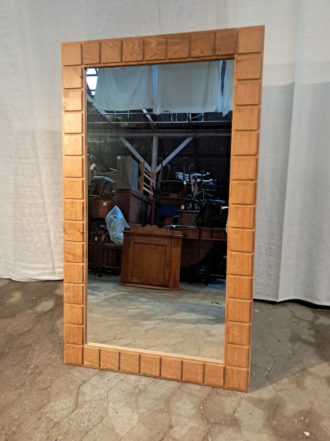 Spejl i massivt egetræ, fra 1980erne.. Det har brugsspor. Højde 122cm Bredde 70cm Emne nummer: 91326