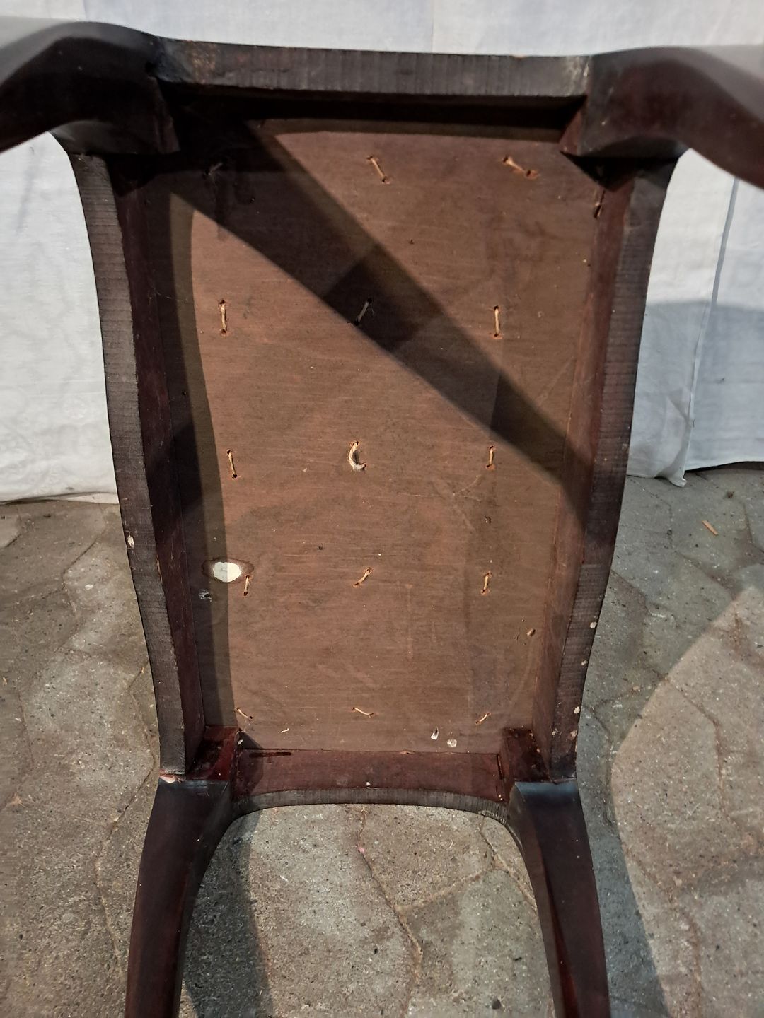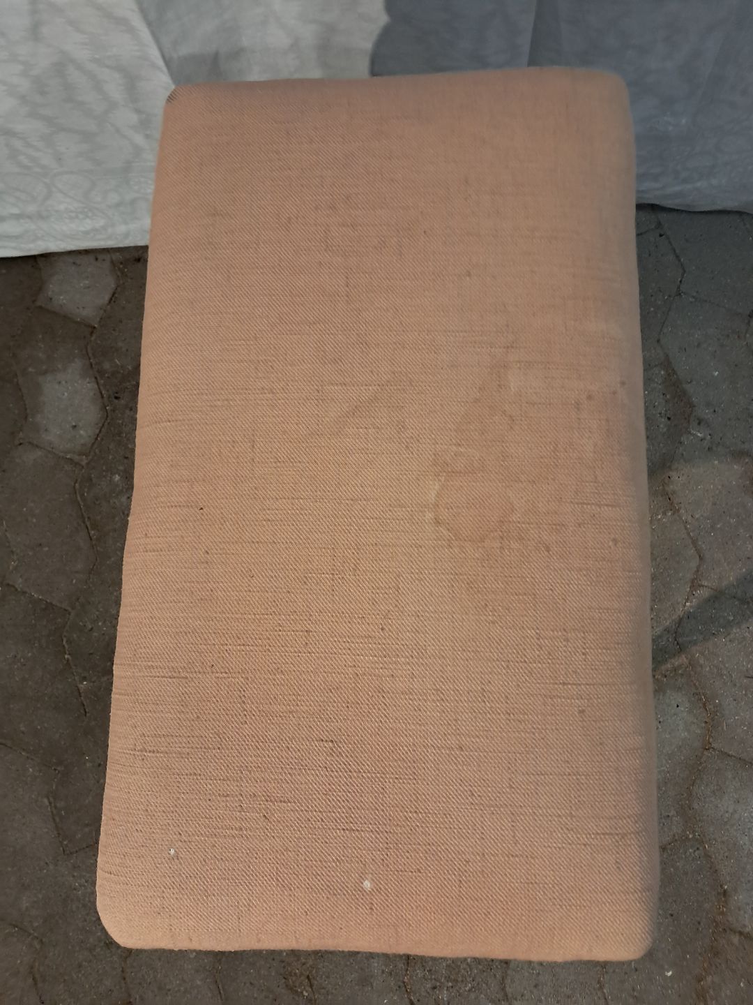 Skammel i massivt bøgetræ, fra 1920erne. Den har brugsspor på betrækket. Højde 52cm Bredde 35cm Længde 59cm Emne nummer: 91331