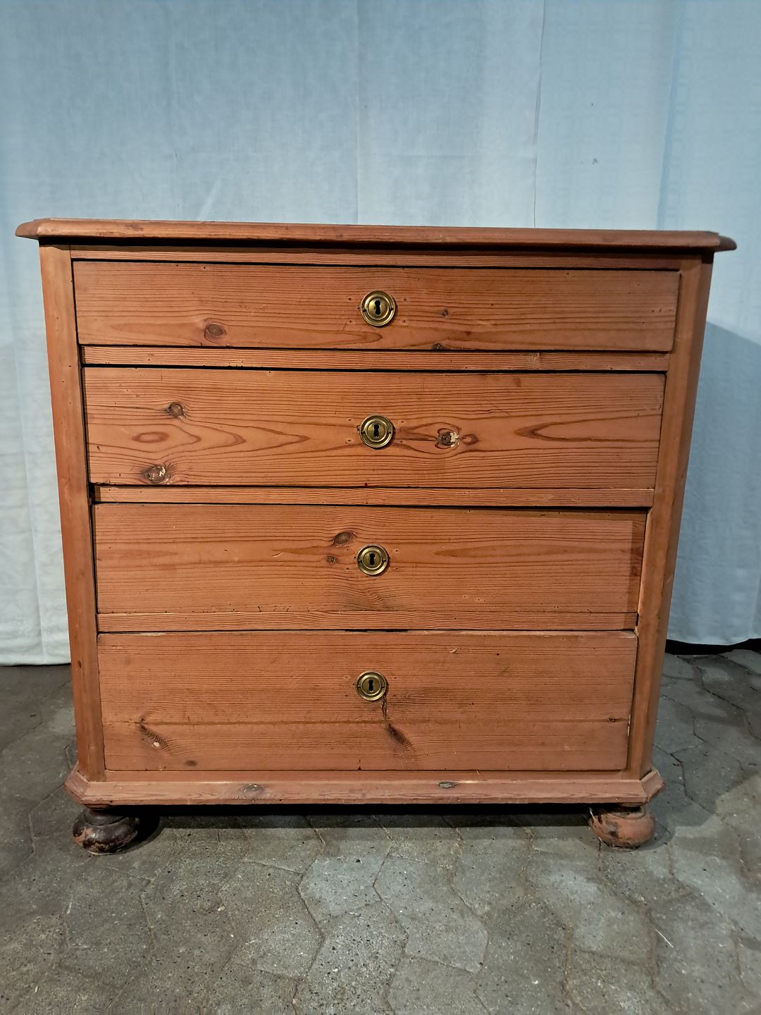 Kommode i massivt fyrretræ, fra 1910erne. Den har brugsspor. Højde 90cm Bredde 91cm Dybde 46cm Emne nummer: 91360
