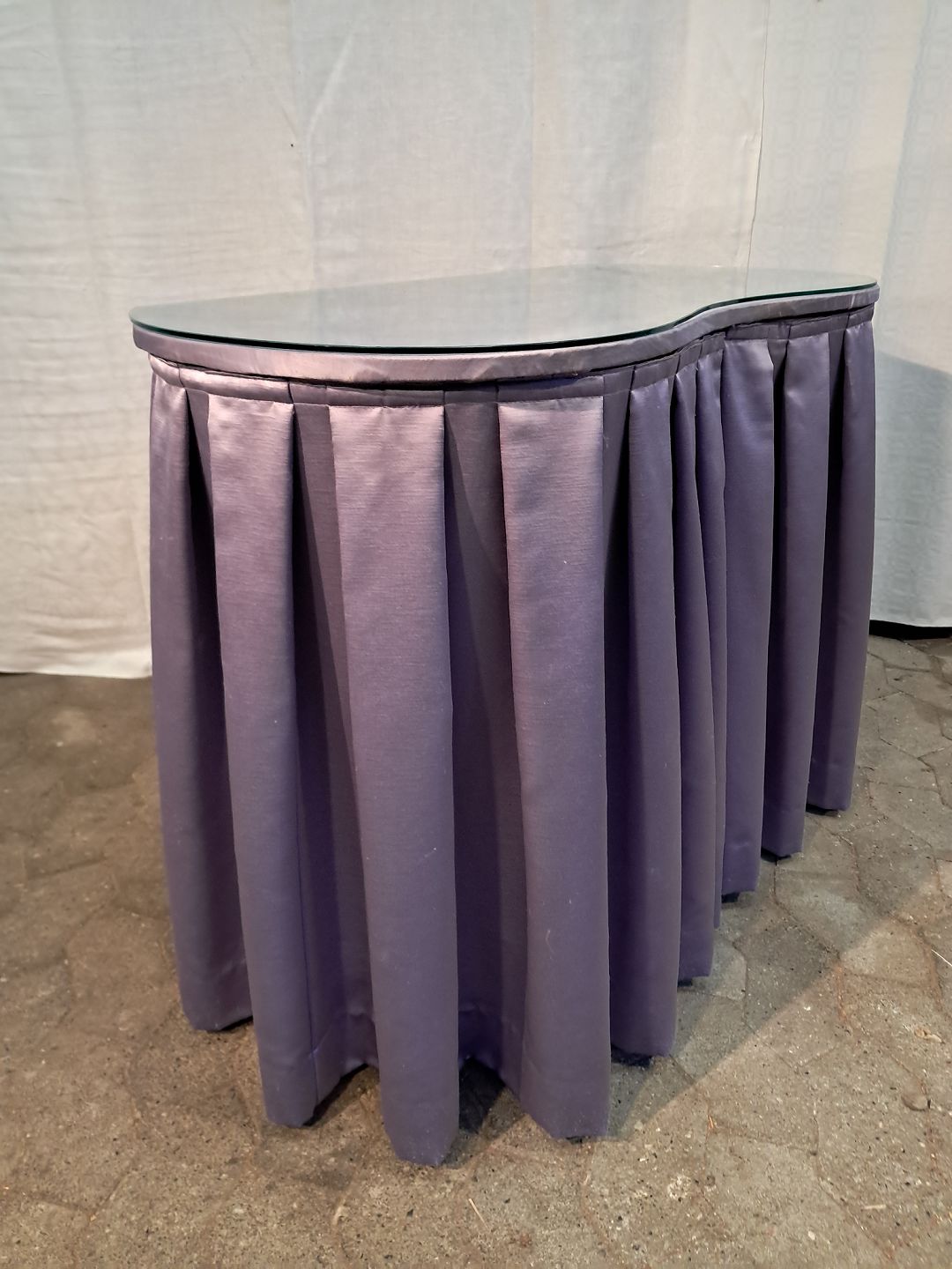 Marie Antoinette sminkebord med glasplade, fra 1950erne. Det har brugsspor og armene hænger, så øverste skuffe driller. Højde 73cm Bredde 100cm Dybde 46cm Emne nummer: 91367