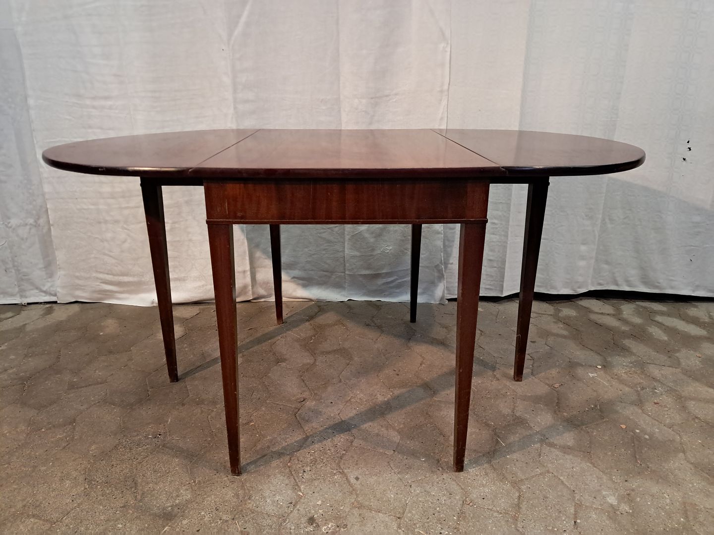 Bord i fineret mahogni, fra 1920erne. Det har brugsspor. Højde 65cm Bredde 84cm Længde 54cm Længde med klapper 136cm Emne nummer: 91369