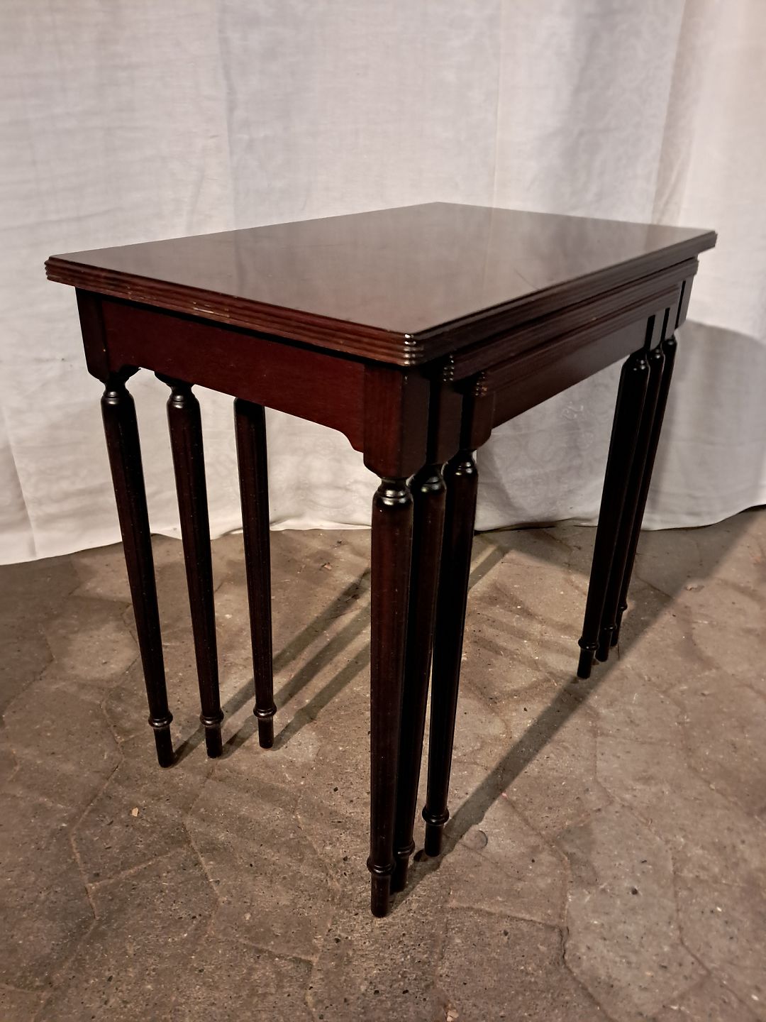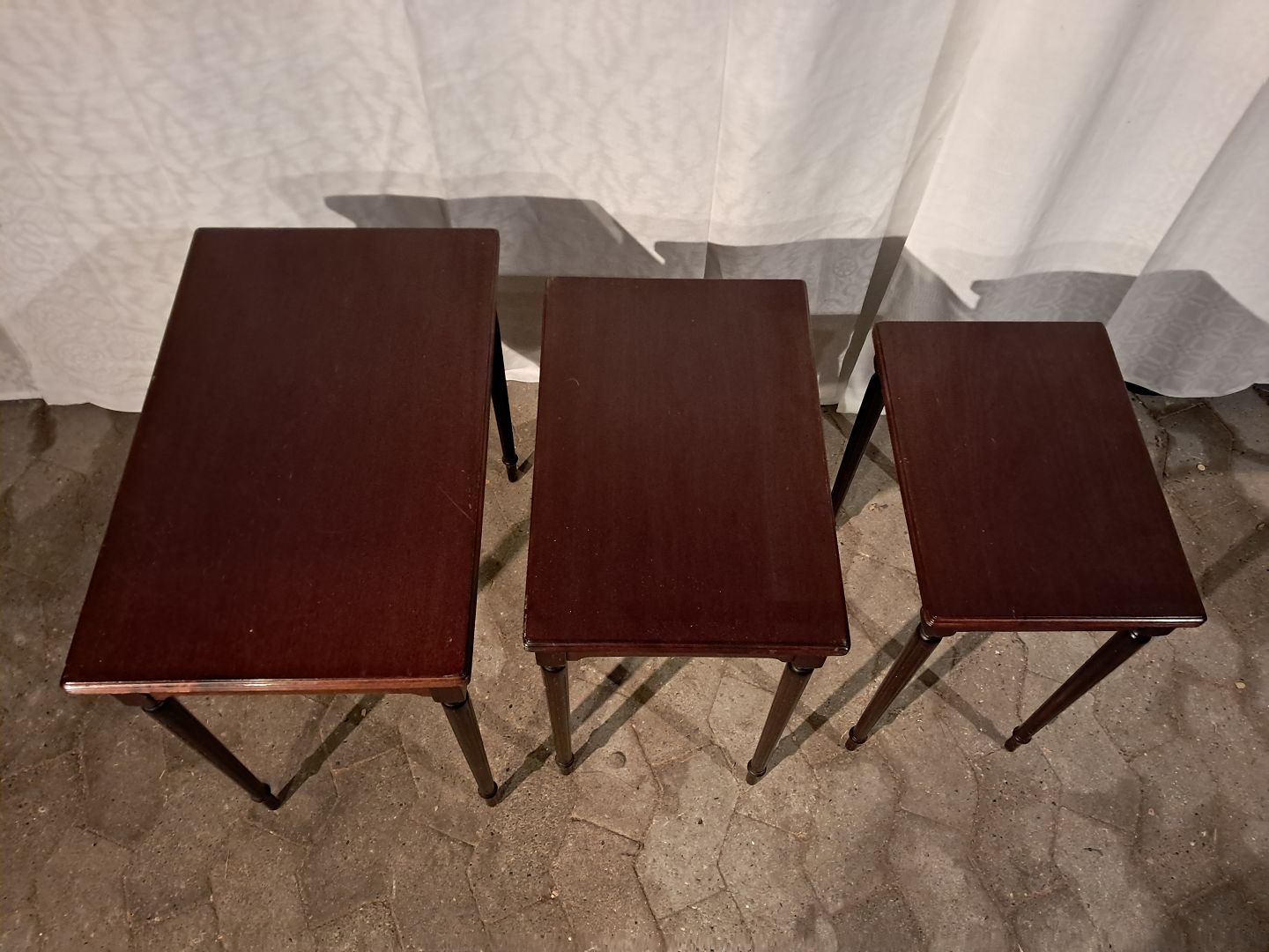 3 Indskudsborde i massivt og fineret bøgetræ, fra 1980erne. De har brugsspor. Højde 53cm Bredde 55cm Dybde 35cm Emne nummer: 91381
