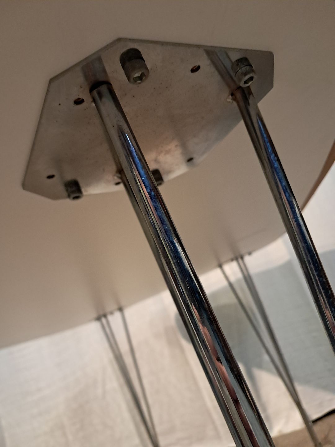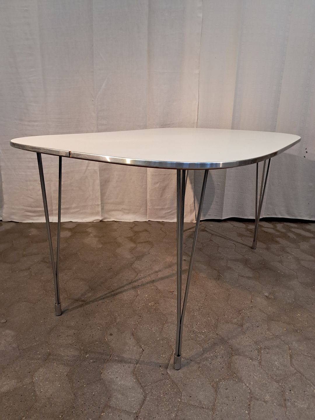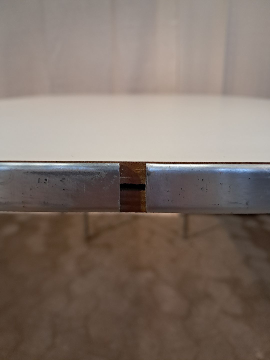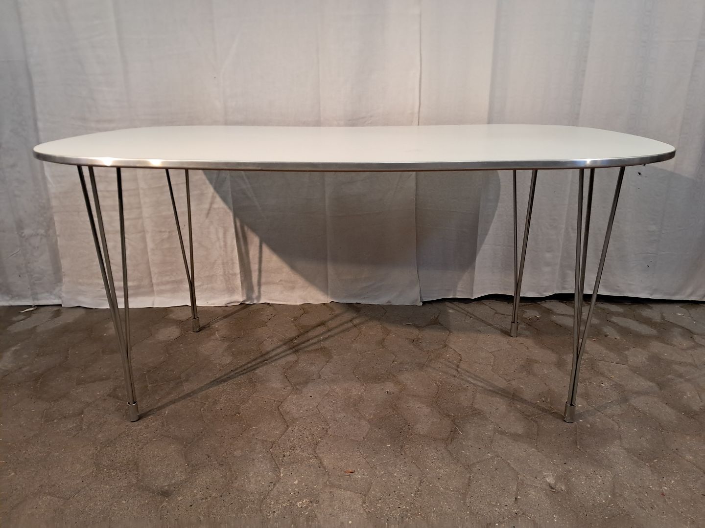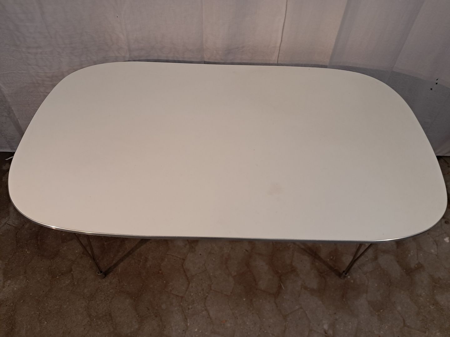 Spisebord med metalben, fra 2000erne. Det har brugsspor. Højde 73cm Bredde 90cm Længde 151cm Emne nummer: 91394