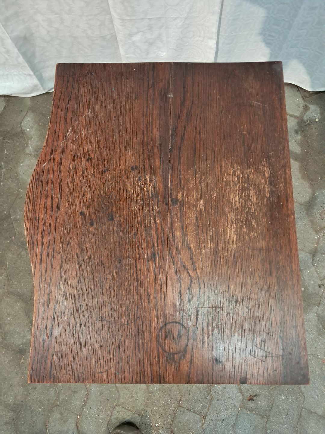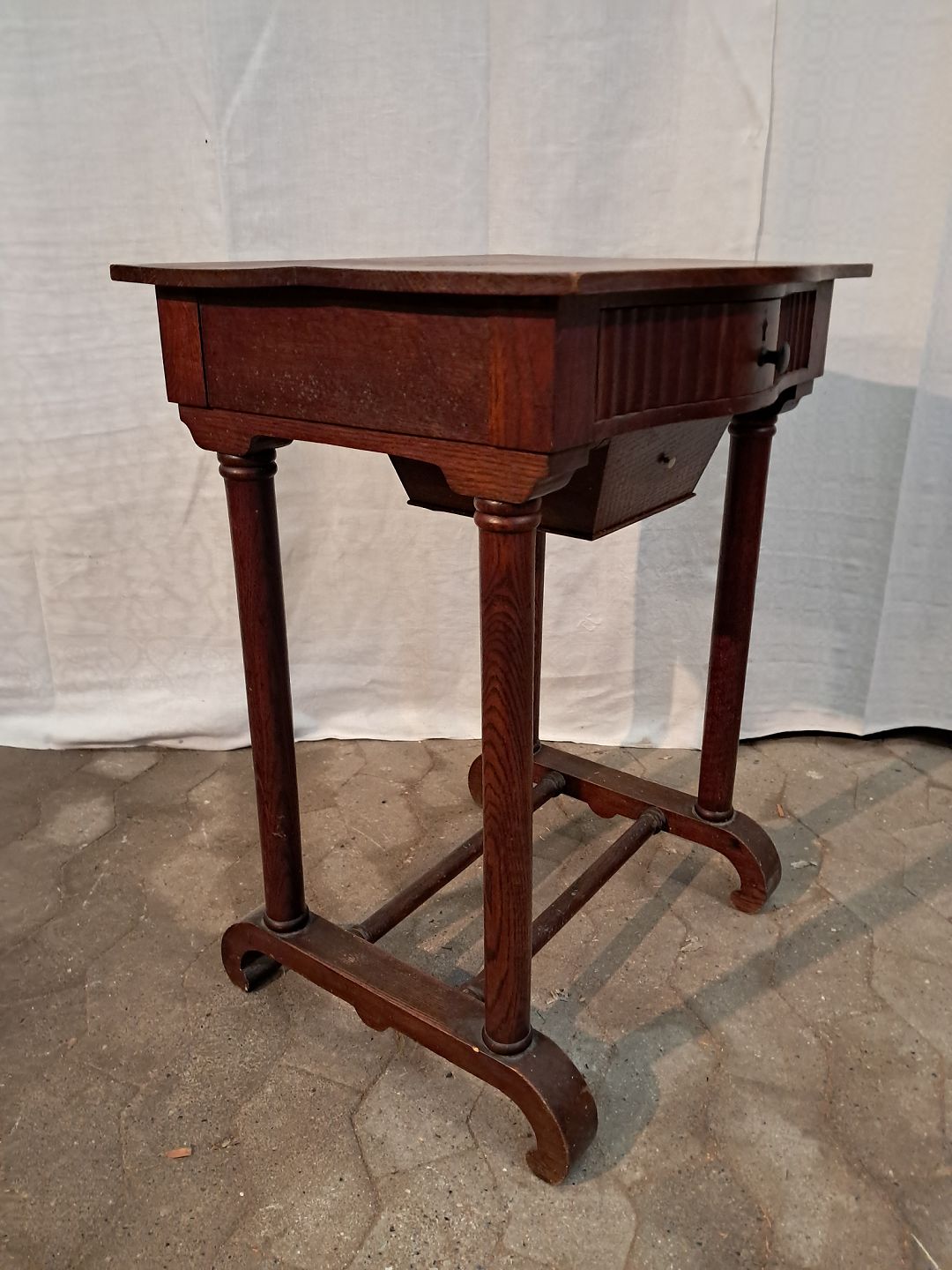 Sybord i massivt egetræ, fra 1900erne. Det har brugsspor. Højde 75cm Bredde 58cm Dybde 47cm Emne nummer: 91405