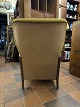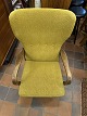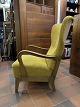 Dansk møbeldesign øreklapstol udført med stel af bejdset nød samt polstret med uldstof. Produceret ca. 1950