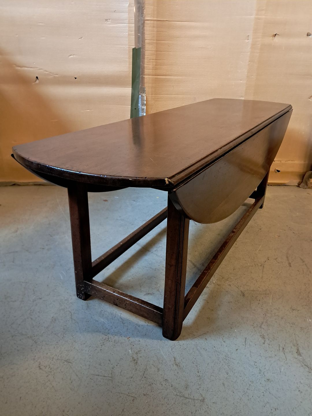 Sofabord i massivt mahogni, fra 1980erne. Det har brugsspor. Højde 54cm Længde 152cm Bredde 45cm Bredde med klapper 90cm Emne nummer: 76065
