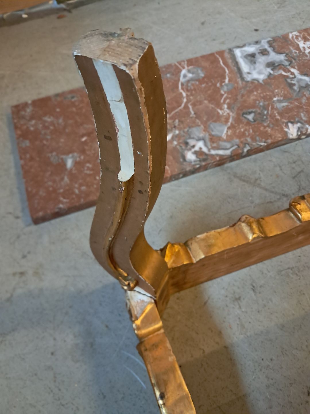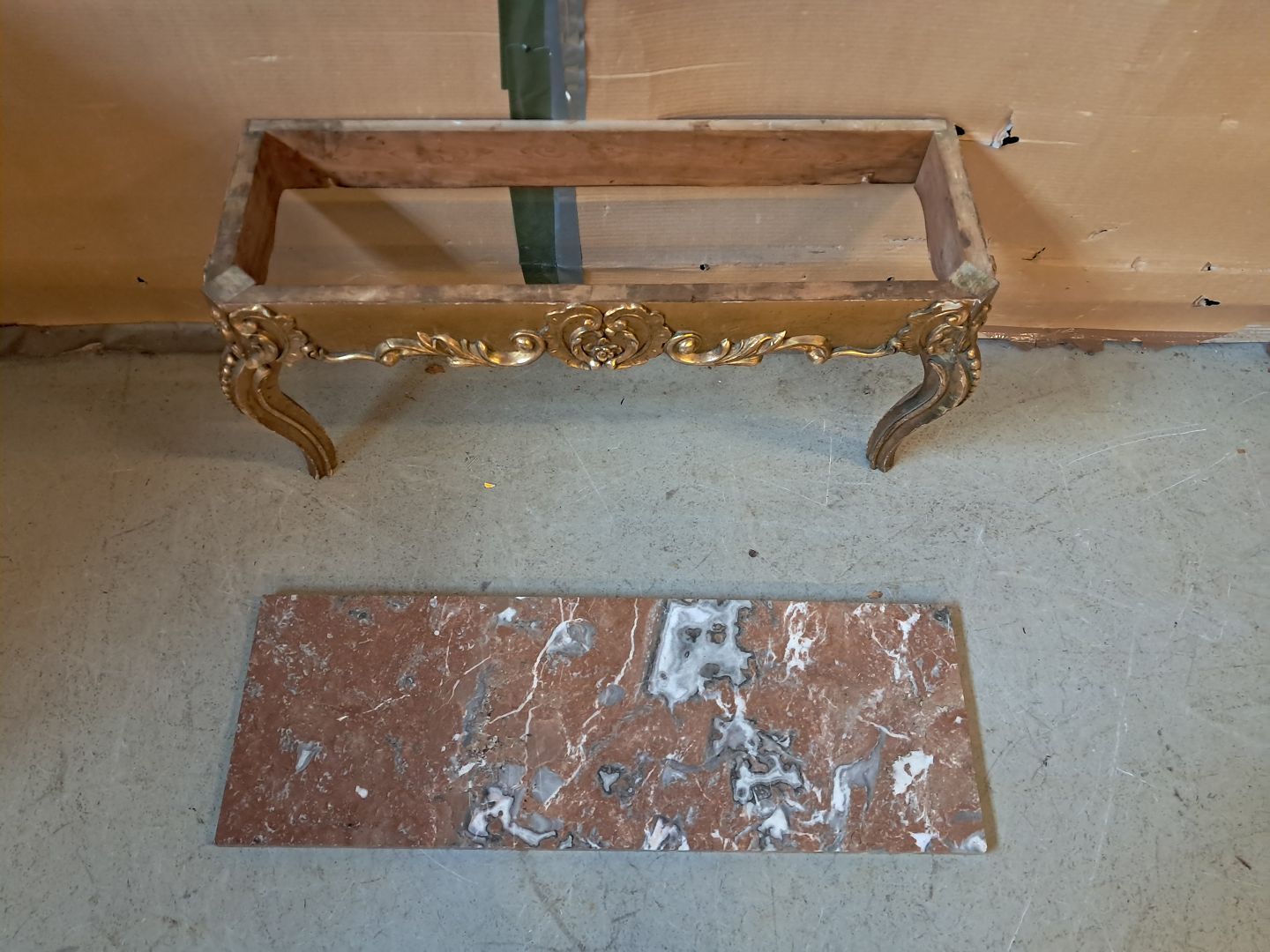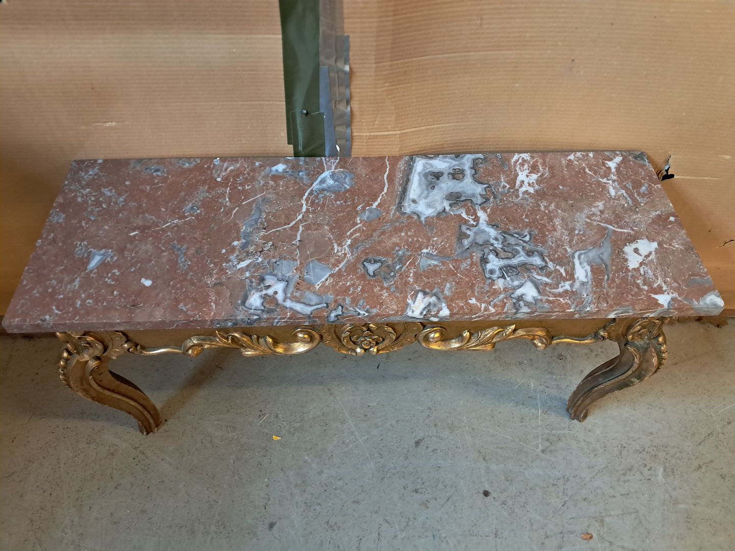 Guldmalet konsol med marmorplade, fra 1900erne.