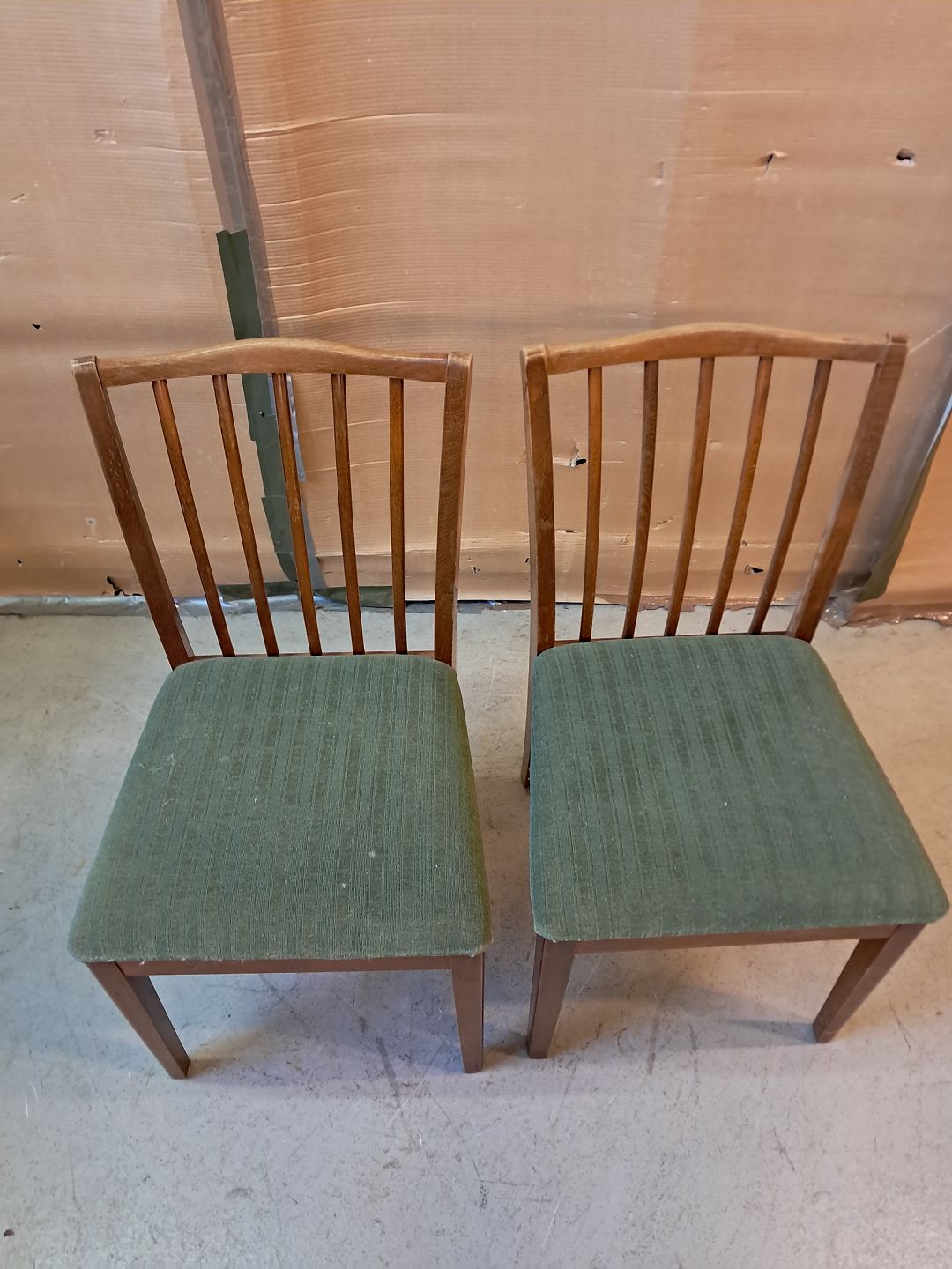 2 Stole i massivt bøgetræ, fra 1950erne. De har brugsspor. Ryghøjde 86cm Sædehøjde 46cm Emne nummer: 76075