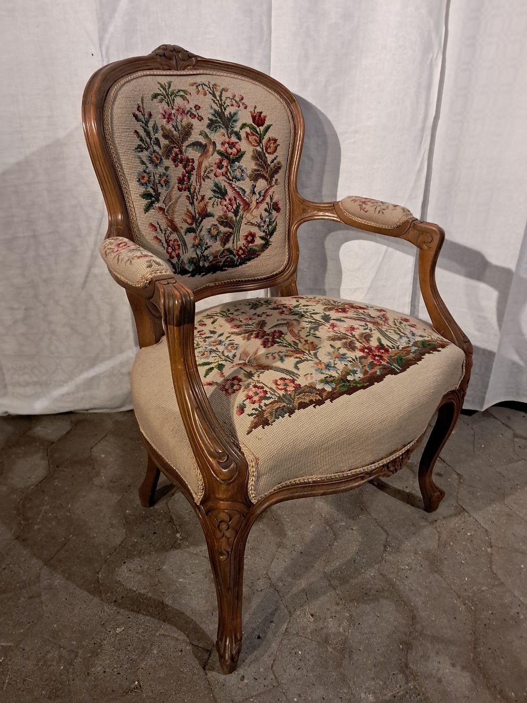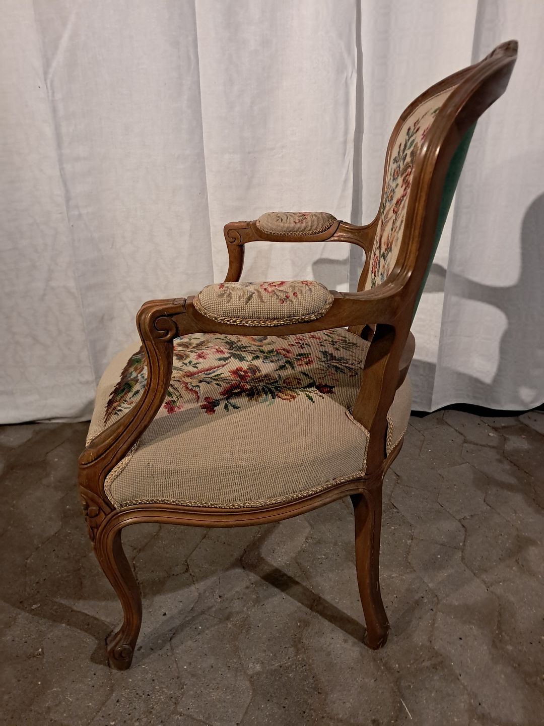 Armstol i massivt bøgetræ, fra 1950erne. Den har et løst kantbånd. Ryghøjde 91cm Sædehøjde 41cm Emne nummer: 91415