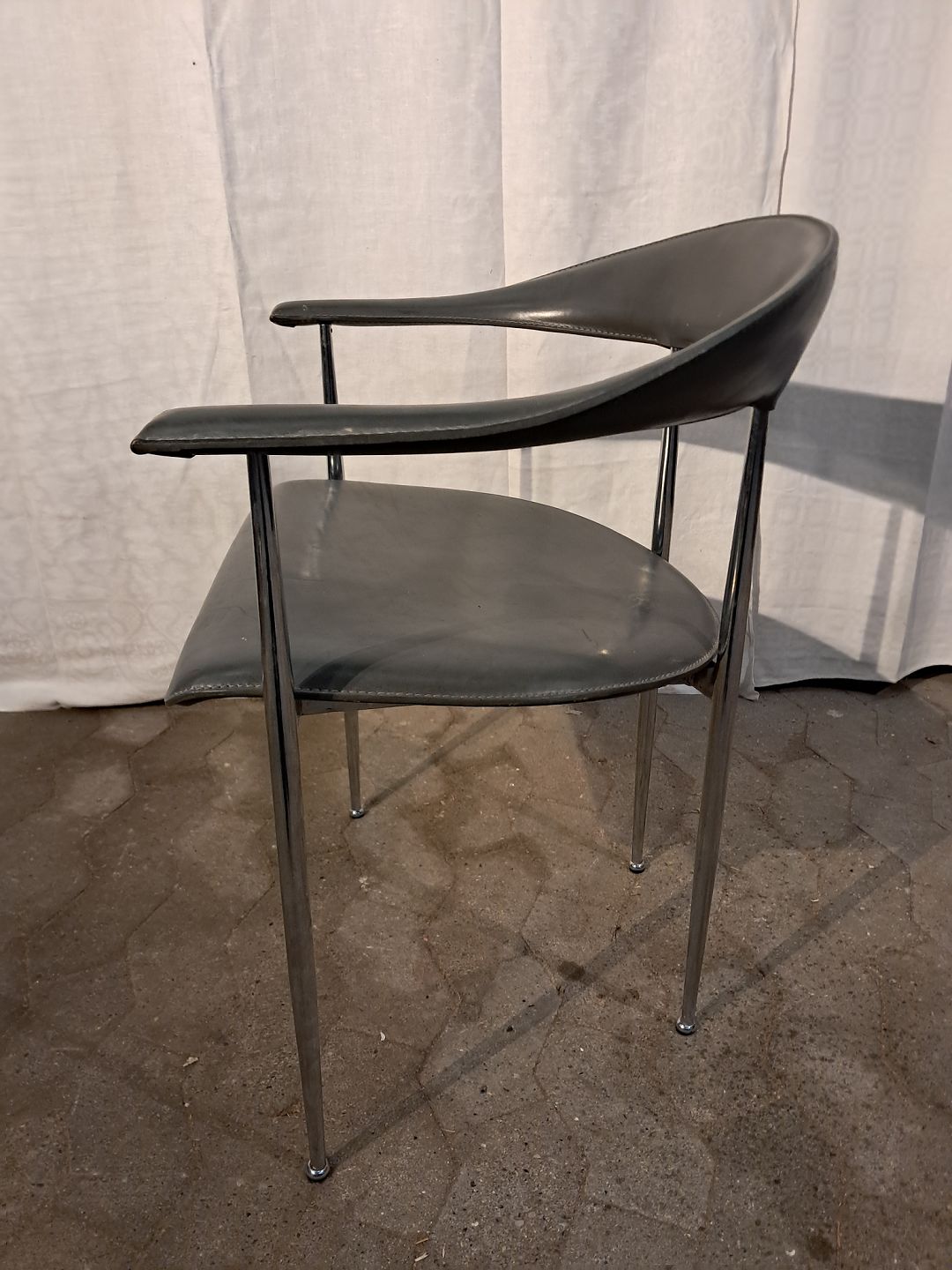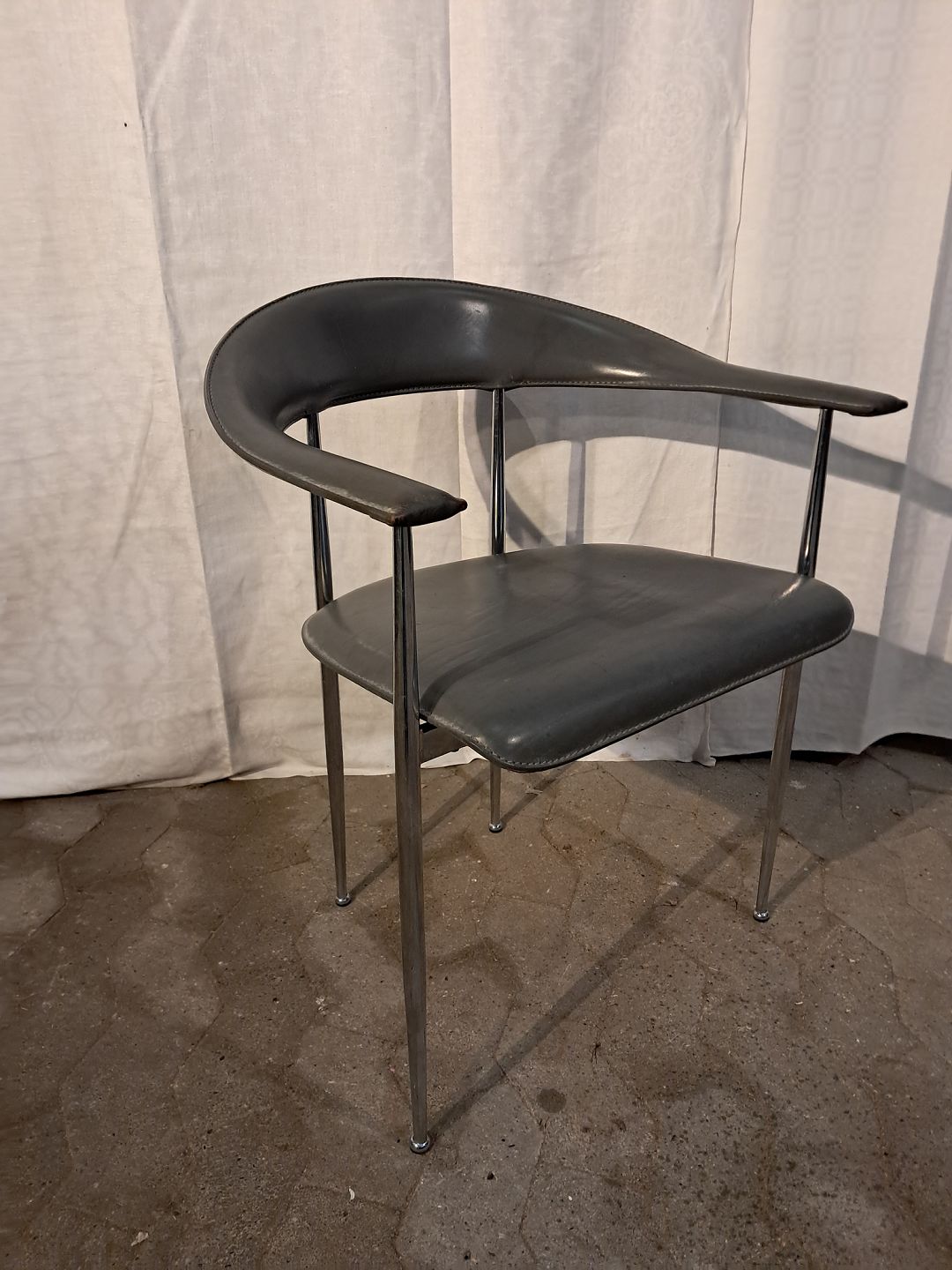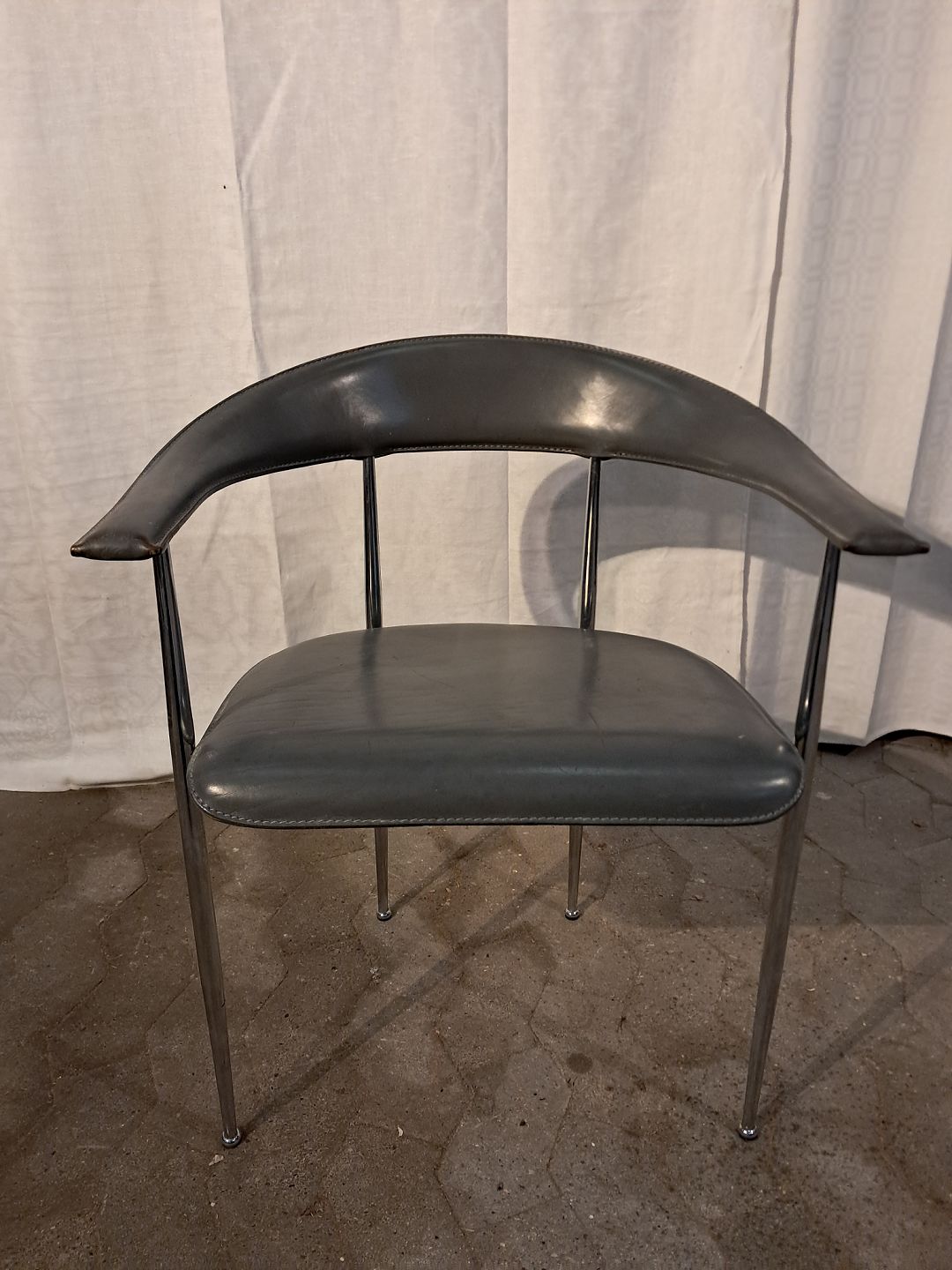 Stol i metal og læder, fra 2000erne. Den har brugsspor. Ryghøjde 73cm Sædehøjde 46cm Emne nummer: 91427