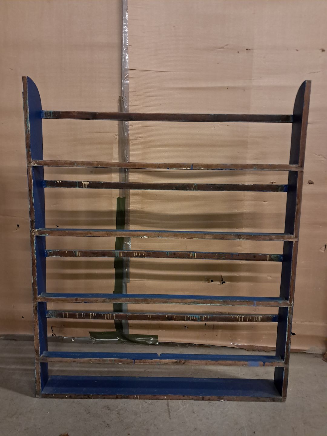Malet tallerkenrække i massivt fyrretræ, fra 1920erne. Den har brugsspor. Højde 125cm Bredde 101cm Dybde 13cm Emne nummer: 76141