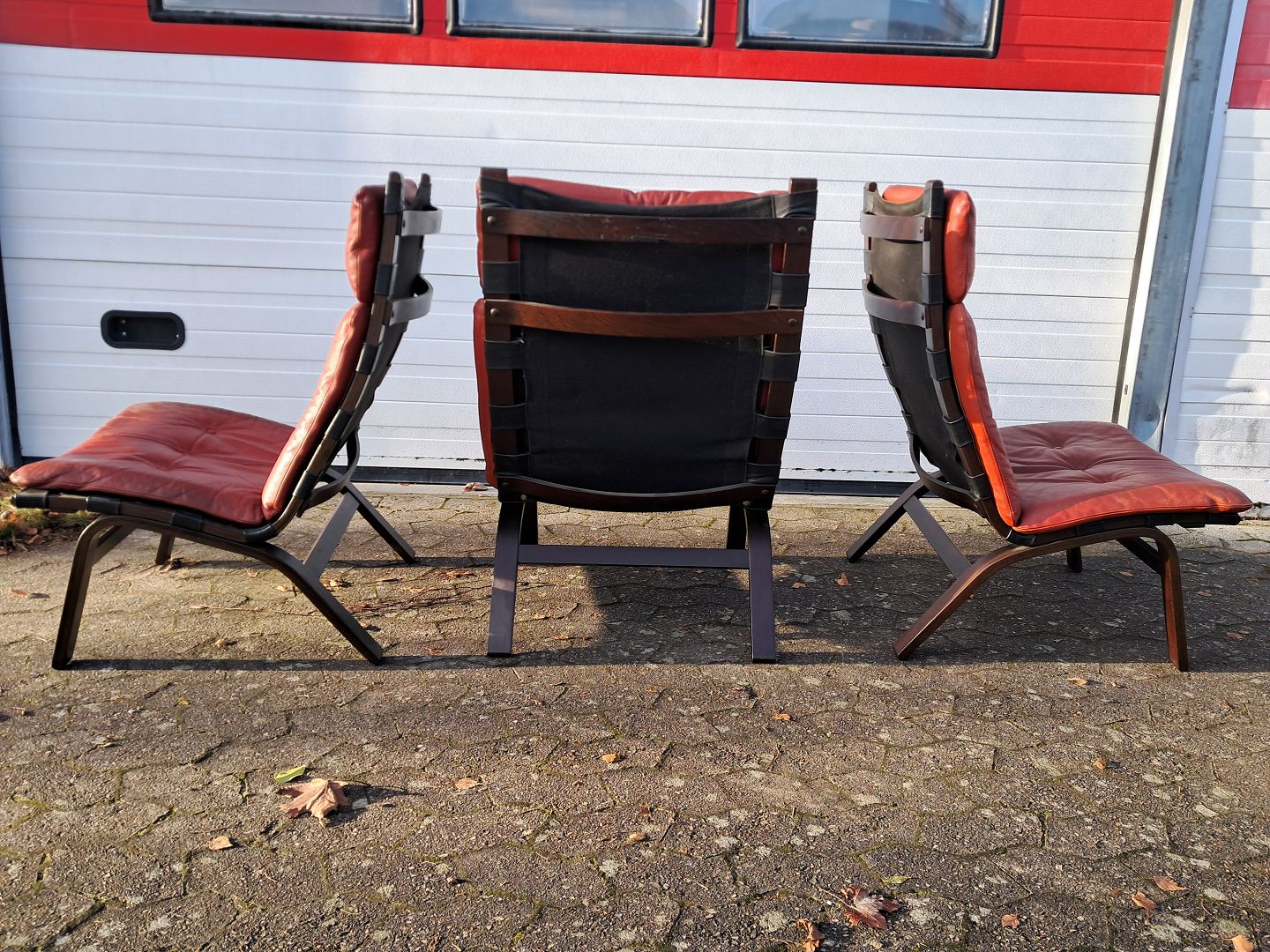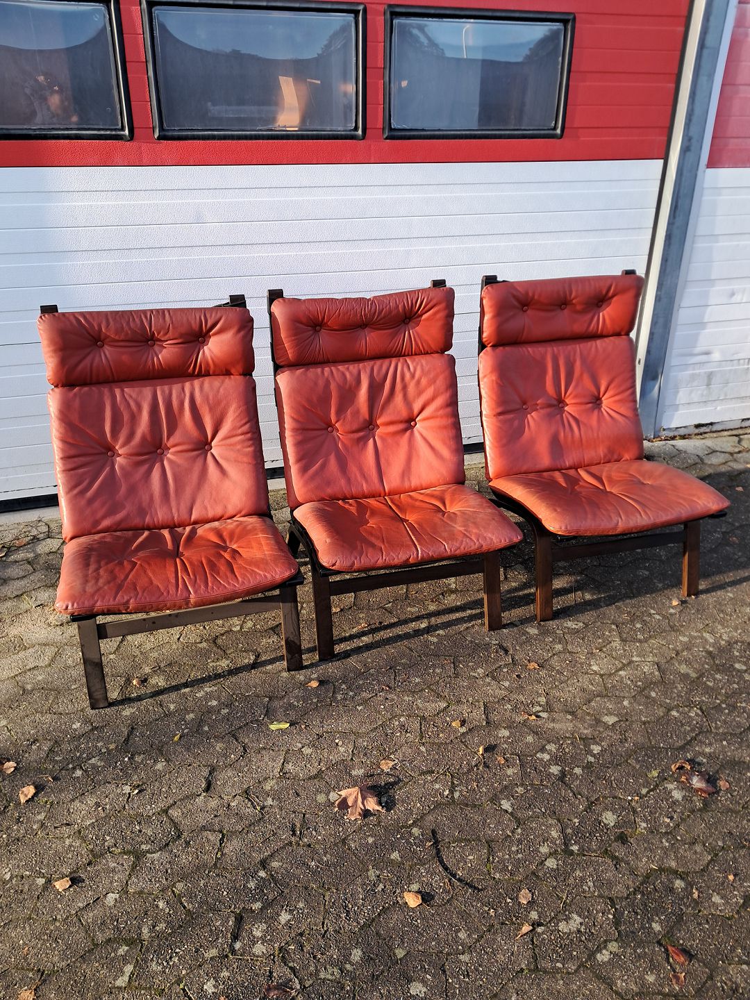 3 Farstrup lænestole med læderhynder, fra 1990erne. De har brugsspor. Ryghøjde 99cm Sædehøjde 38cm Emne nummer: 76163