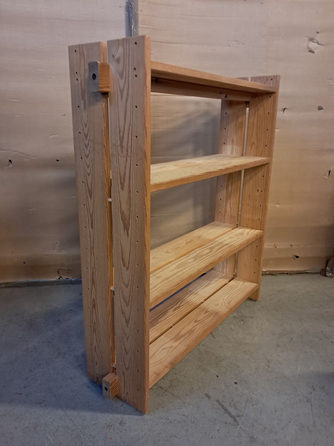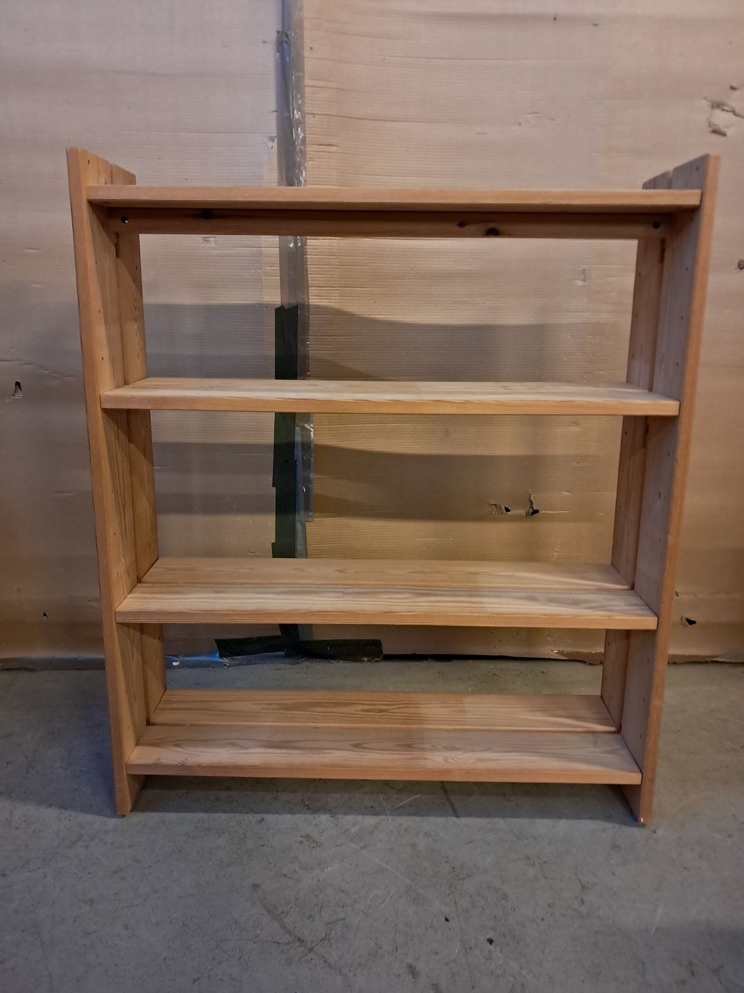 Reol i massivt fyrretræ, fra 1980erne. Den har brugsspor. Højde 99cm Bredde 92cm Dybde 25cm Emne nummer: 76201
