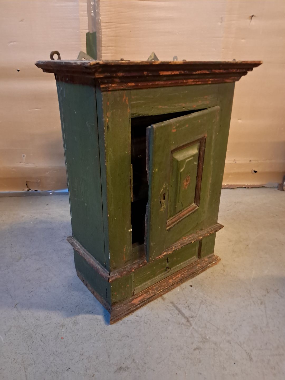 Vægskab i malet massivt fyrretræ, fra 1860erne.