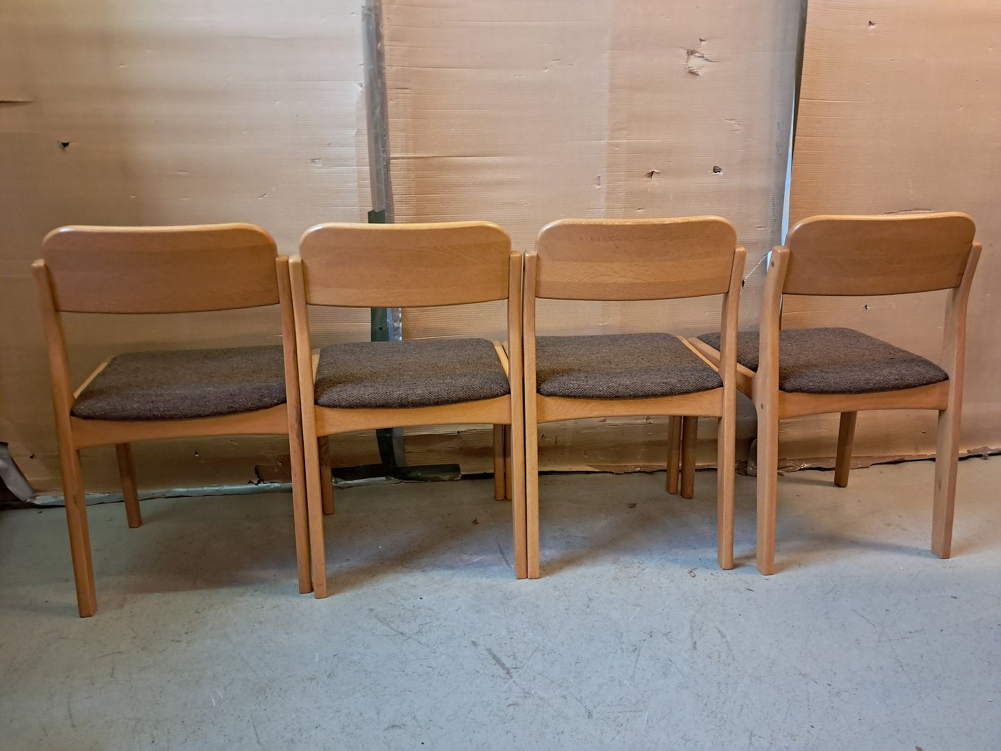 2 Stole i massivt egetræ, fra 1980erne. De har små brugsspor. Ryghøjde 79cm Sædehøjde 45cm Emne nummer: 76212
