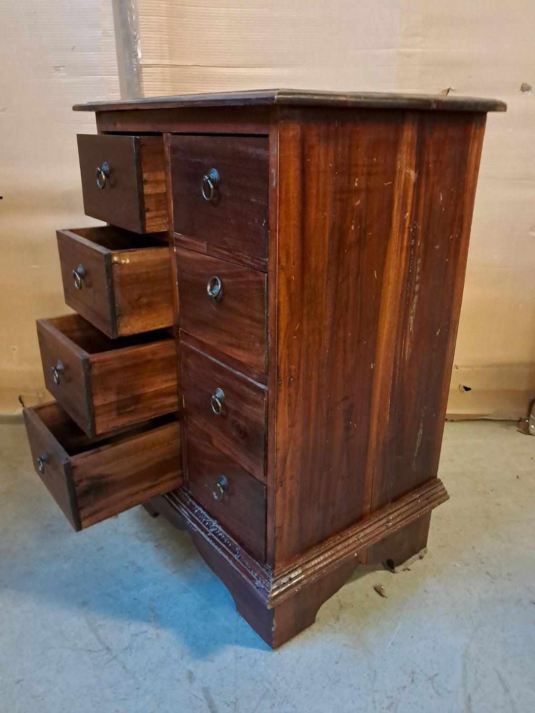 Kommode i massivt mahogni, fra 2000erne. Den har brugsspor. Højde 83cm Bredde 58cm Dybde 43cm Emne nummer: 76216