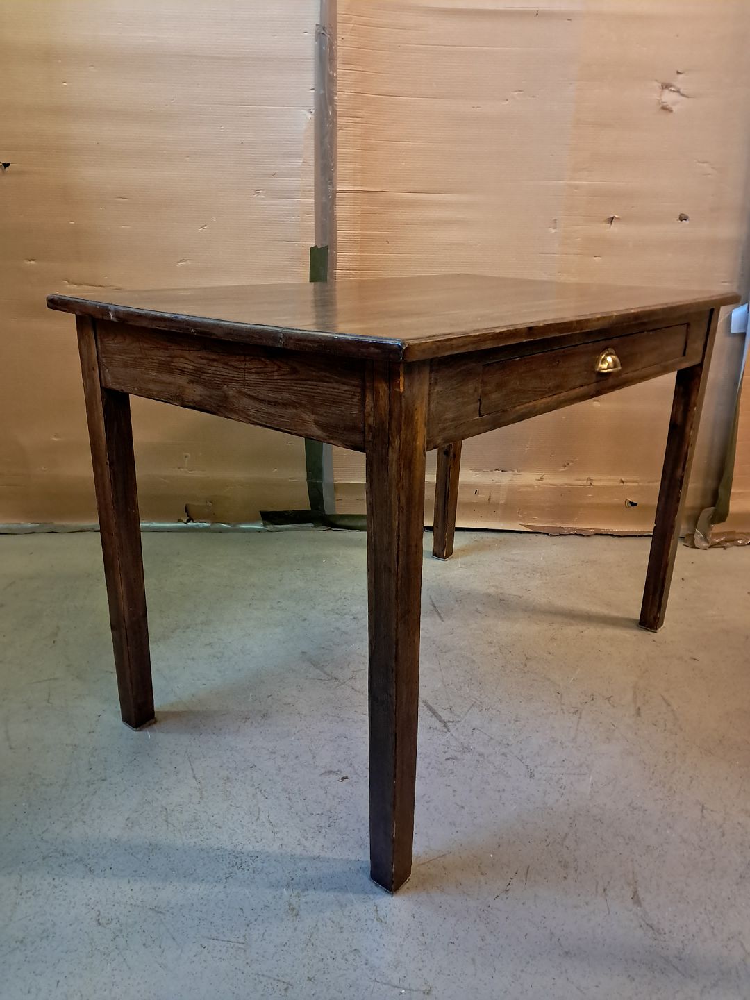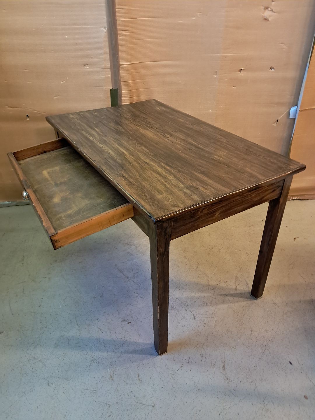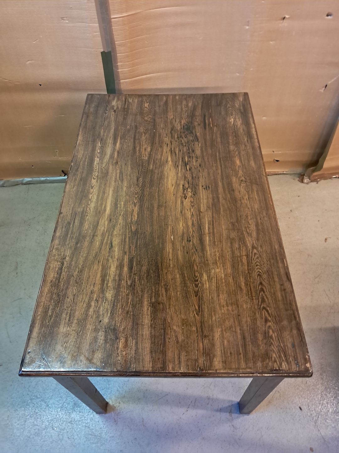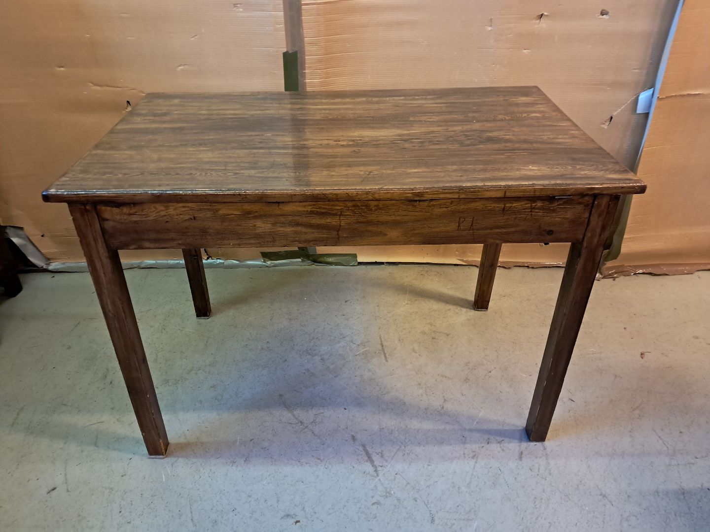 Bord i bejdset og lakeret massivt fyrretræ, fra 1930erne. Det har brugsspor. Højde 73cm Bredde 109cm Dybde 66cm Emne nummer: 76221